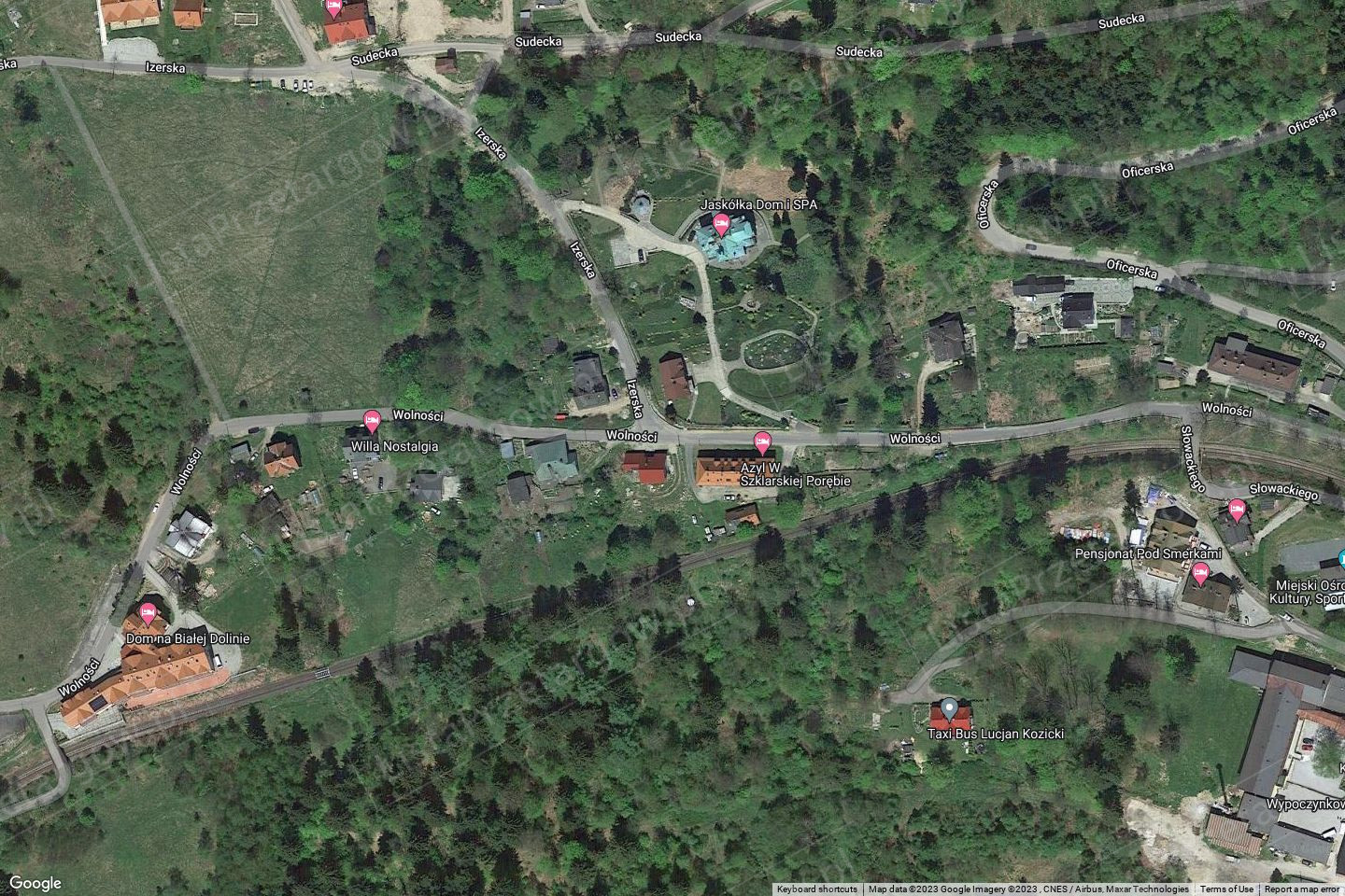 Działka przy ulicy Wolności, to zieleń i przepiękne widoki na Karkonosze. Działka otoczona górami Izerskimi i lasami, znajduje się w pobliżu rozproszonej zabudowy mieszkalnej oraz w sąsiedztwie tras biegowych łączących Szklarską Porębę z Jakuszycami.