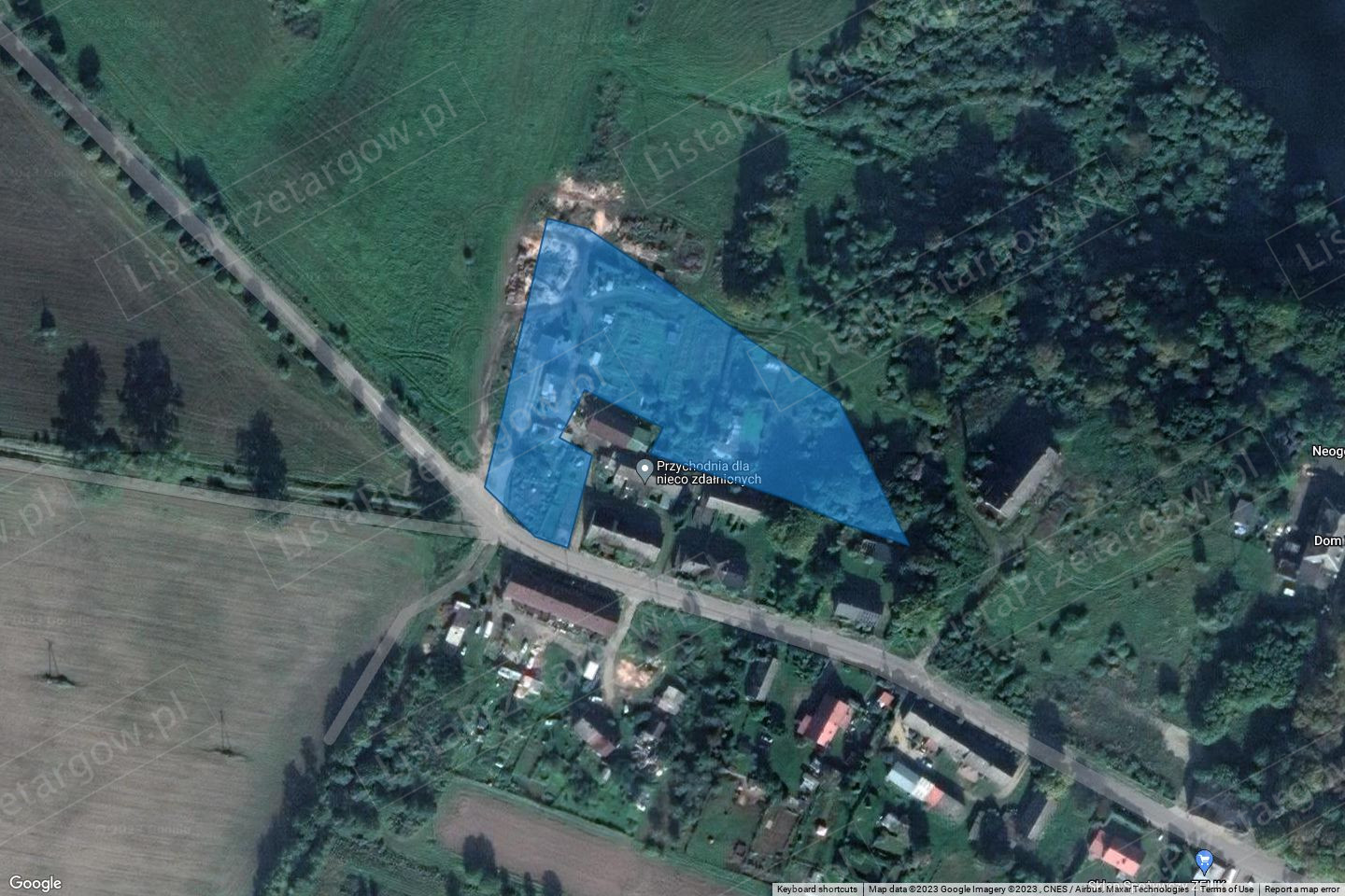 w kierunku na miejscowość Garbno. Sąsiaduje z zabudowaniami wsi, gruntami rolnymi, zabudowaniami starej