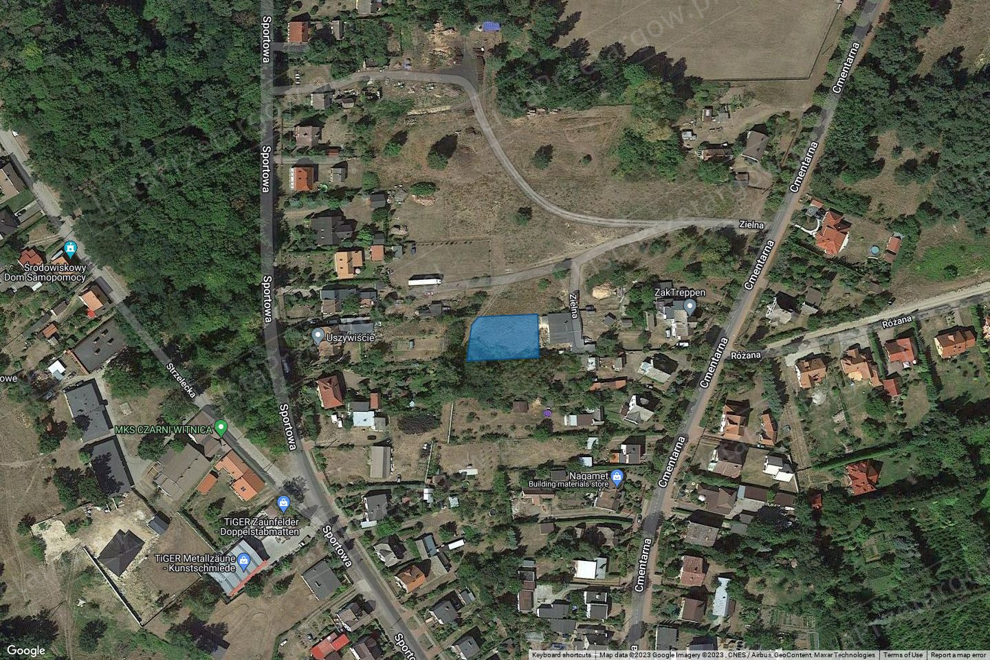 Nieruchomość położona w funkcjonalnej części miasta Witnica, w obszarze zabudowy mieszkaniowej. Dostęp do drogi publicznej, dojazd drogą gruntową ul. Zielną. Sąsiedztwo i otoczenie stanowią: działki budowlane, zabudowa mieszkaniowa jednorodzinna, cmentarz, tereny leśne. Kształt nieruchomości w miarę regularny, teren płaski, porośnięty roślinnością trawiastą, zadrzewiony. Na terenie nieruchomości nie wyklucza się wystąpienia elementów uzbrojenia podziemnego i budowli podziemnych oraz odpadów wtórnych, takich jak wysypisko śmieci, gruzu, materiałów budowlanych oraz innych odpadów i zanieczyszczeń - nie uwidocznionych na mapie. Ewentualne koszty związane z ich usunięciem i uporządkowaniem terenu, a także koszty związane z realizacją inwestycji na takim terenie obciążają nabywcę. Uzbrojenie: do dociągnięcia z pasa drogowego ul. Cmentarnej pełne tj. sieć elektroenergetyczna, sieć gazowa, sieć kanalizacji sanitarnej, sieć wodociągowa oraz sieć telekomunikacyjna. Przeznaczenie nieruchomości: Nieruchomość nie jest objęta miejscowym planem zagospodarowania przestrzennego. Zgodnie ze Studium Uwarunkowań i Kierunków Zagospodarowania Przestrzennego Miasta i Gminy Witnica zatwierdzonym Uchwałą Rady Miejskiej w Witnicy nr XXII/118/2004r., z dnia 30.09.2004r., nieruchomość stanowi strefę rozwoju zabudowy mieszkaniowej z towarzyszeniem usług i nieuciążliwej produkcji. Dla ww. działki nie wydano decyzji o warunkach zabudowy oraz decyzji o ustaleniu lokalizacji inwestycji celu publicznego.