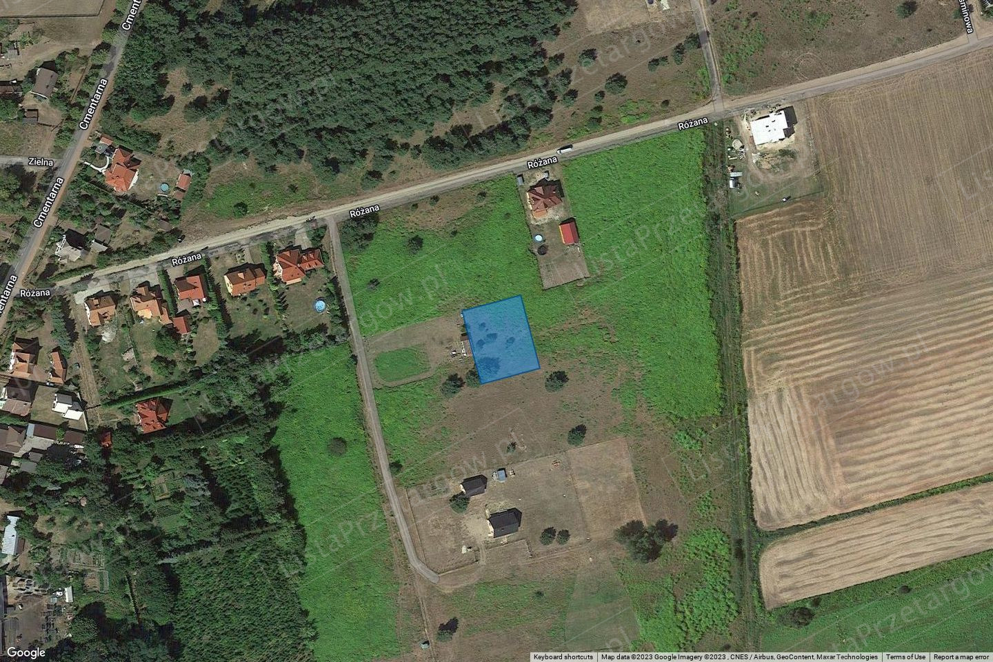 Nieruchomość położona w peryferyjnej części miasta Witnica, w obszarze zabudowy mieszkaniowej jednorodzinnej. Dostęp do drogi publicznej nieurządzonej ul. Azaliową Nr G103950F. Dojazd drogą gruntową częściową utwardzoną betonowymi płytami ul. Różaną. Sąsiedztwo i otoczenie stanowią: zabudowa mieszkaniowa jednorodzinna, działki budowlane, tereny leśne, cmentarz. Kształt nieruchomości regularny, prostokątny, teren płaski, porośnięty roślinnością trawiastą oraz pojedynczymi samosiejami. Na terenie nieruchomości nie wyklucza się wystąpienia elementów uzbrojenia podziemnego i budowli podziemnych oraz odpadów wtórnych, takich jak wysypisko śmieci, gruzu, materiałów budowlanych oraz innych odpadów i zanieczyszczeń - nie uwidocznionych na mapie. Ewentualne koszty związane z ich usunięciem i uporządkowaniem terenu, a także koszty związane z realizacją inwestycji na takim terenie obciążają nabywcę. Uzbrojenie: sieć elektroenergetyczna; do dociągnięcia: sieć wodociągowa, sieć kanalizacji sanitarnej, gazowa oraz telekomunikacyjna w pasie drogowym ul. Różanej. Przeznaczenie nieruchomości: Zgodnie z aktualnym planem zagospodarowania przestrzennego miasta Witnica, działka przeznaczona jest na cele zabudowy mieszkaniowej jednorodzinnej – symbol zapisu planu MJ -2.