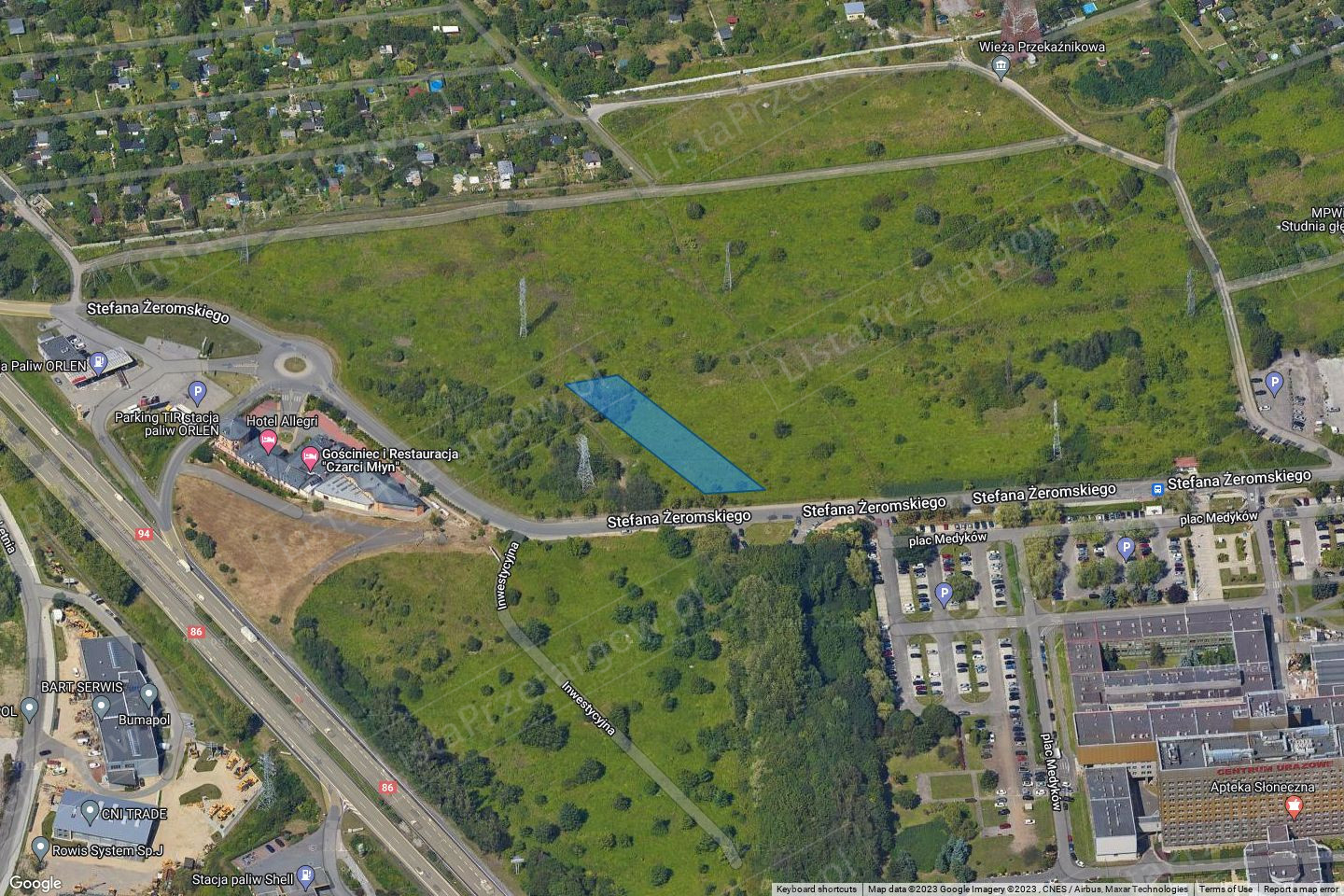 I przetarg ustny nieograniczony na sprzedaż nieruchomości niezabudowanej, stanowiącej własność Gminy Będzin, położonej w Będzinie przy ul. Żeromskiego, oznaczonej numerem ewidencyjnym działki 23/13 o pow. 1748 m² karta mapy 50 obręb Będzin, przeznaczonej w miejscowym planie zagospodarowania przestrzennego pod: