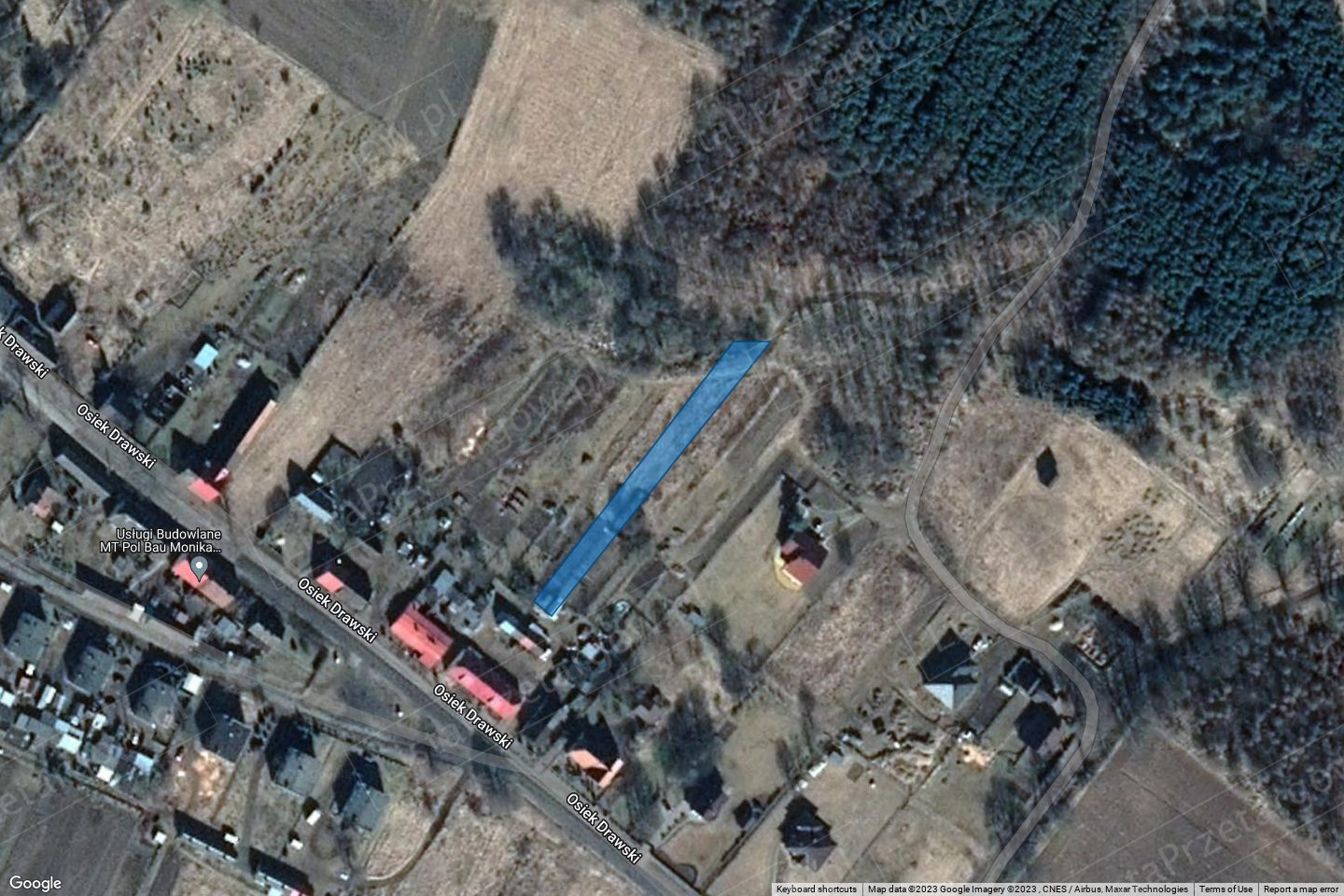 odległości znajduje się pozostała zabudowa wsi Osiek Drawski, tereny inwestycyjne, rolne oraz leśne i zbiorniki