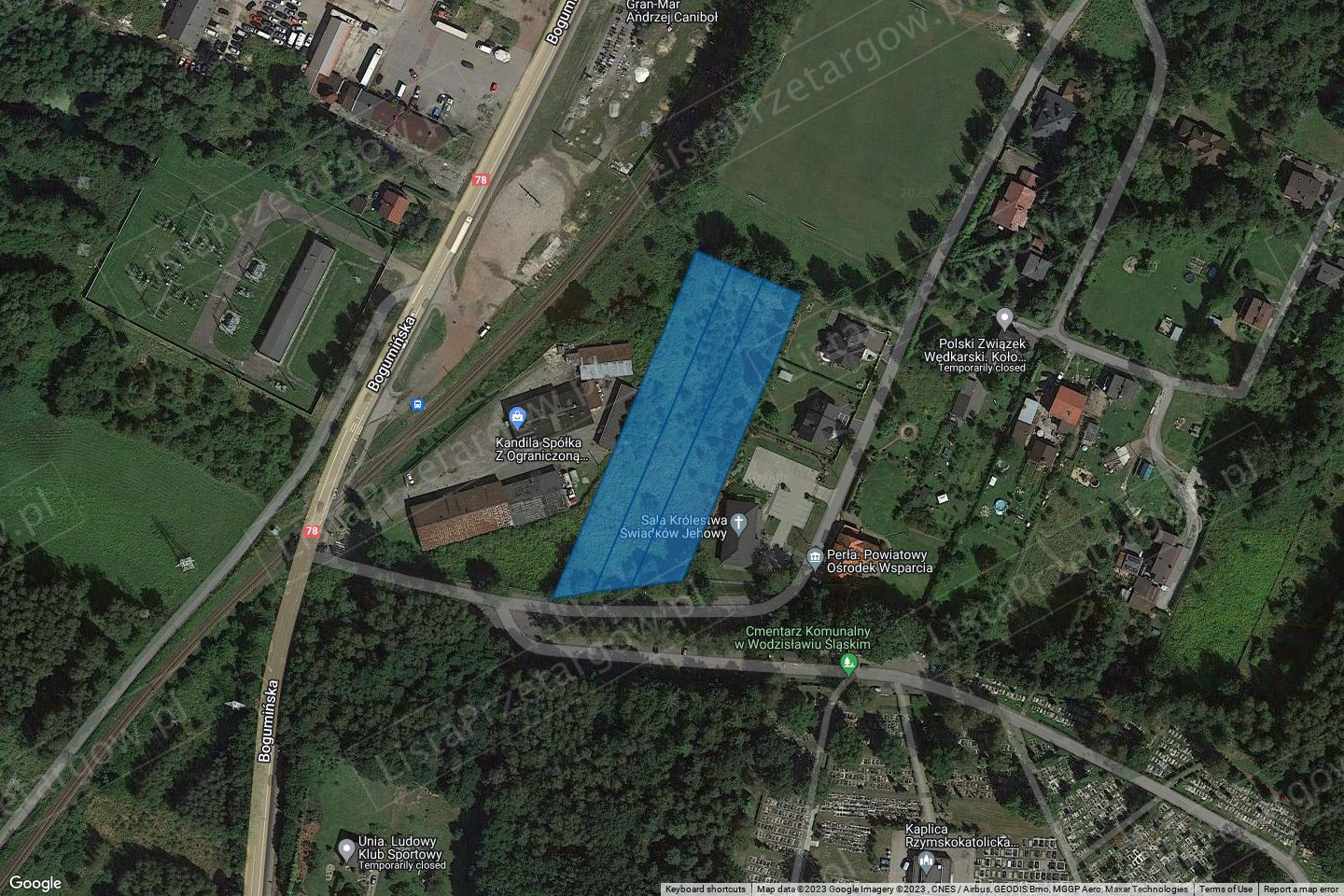 Przedmiotem przetargu jest sprzedaż prawa własności w nieruchomości gruntowej niezabudowanej położonej przy ul. Bogumińskiej w Wodzisławiu Śląskim, składającej się z działek o numerach 1539/34; 1541/31; 1543/28, dla której prowadzona jest księga wieczysta nr XXXX/XXXXXXXX/X.