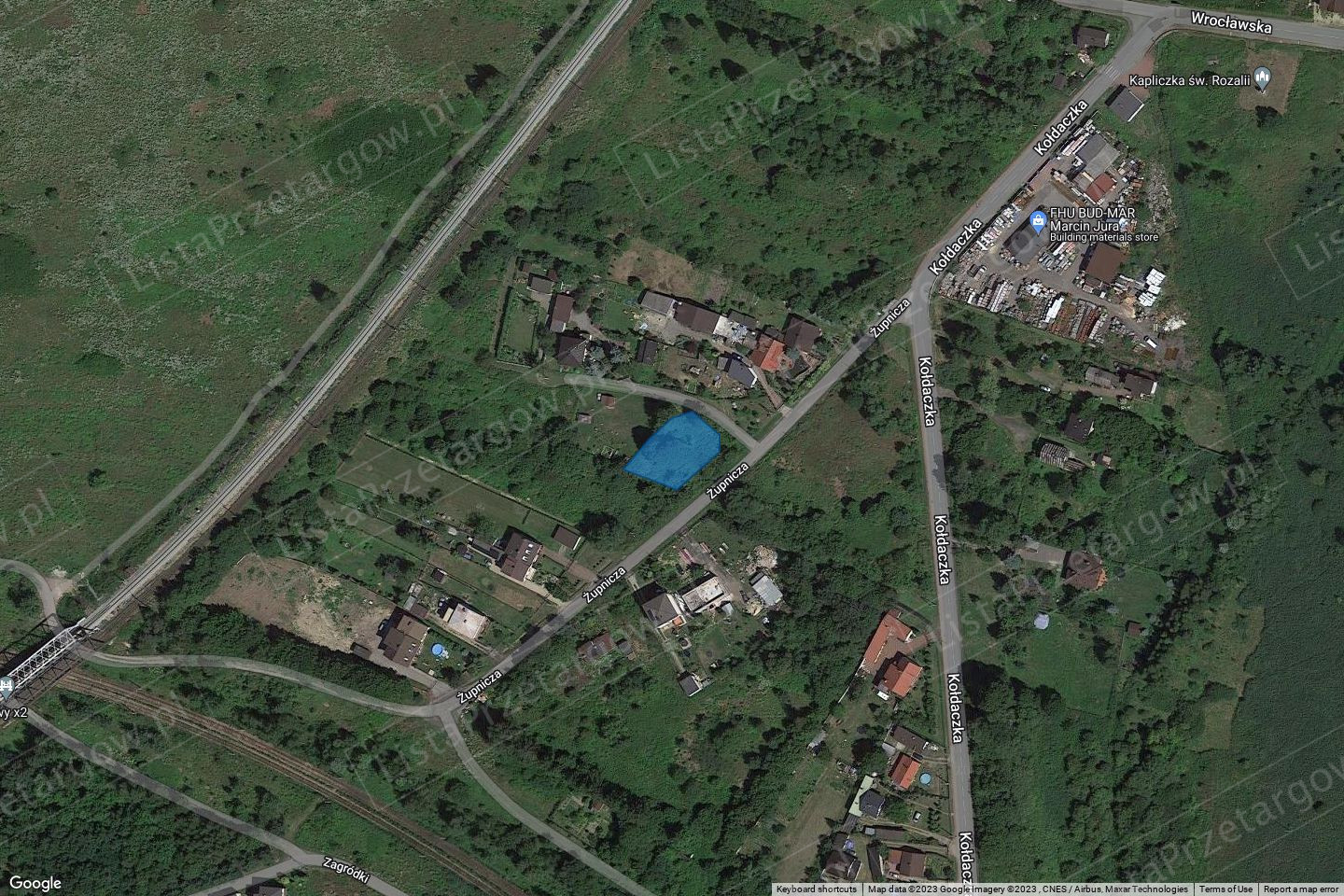 i droga krajowa DK 94. Działka o kształcie nieregularnym o szerokości około 23-31 m i długości około 23m, porośnięta samosiejkami, posiada dostęp do drogi publicznej o nawierzchni utwardzonej. Przez północny teren działki przechodzi instalacja wodociągowa.