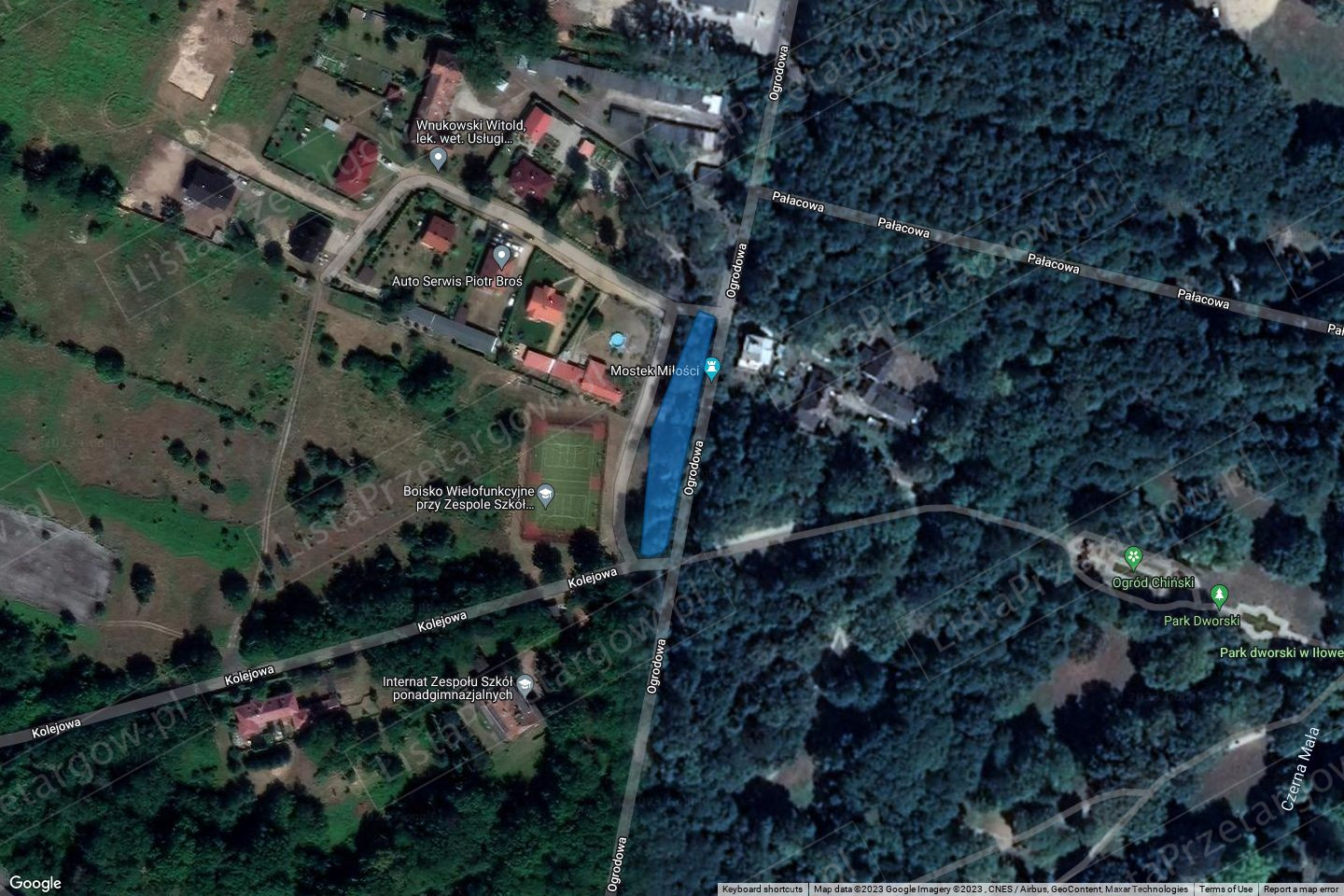 Obręb 0001 miasta Iłowa, ul. Kolejowa (działka 494/41 o pow. 0,1848 ha wraz z udziałem 1/6 w działce 494/43 o pow. 0,1301 ha) Działka 494/41 stanowi nieruchomość gruntową niezabudowaną, niezagospodarowaną, nieogrodzoną, o płaskim ukształtowaniu i regularnym kształcie, porośniętą intensywnie roślinnością trawiastą. Południowa połowa działki jest zajęta dzikim zadrzewieniem bez wartości użytkowej, północna połowa działki jest utwardzona asfaltem – byłe boisko sportowe. W bezpośrednim sąsiedztwie grunty niezabudowane i pas drogowy ul. Kolejowej, w pobliżu znajduje się dworzec kolejowy oraz zabudowa jedno i wielorodzinna. Nieruchomość nie jest wyposażona w urządzenia infrastruktury technicznej. Dojazd do drogi publicznej zapewniony będzie przez działkę oznaczoną nr 494/43 stanowiącą drogę wewnętrzną. Brak obowiązującego planu zagospodarowania przestrzennego. W oparciu o zmianę „studium uwarunkowań i kierunków zagospodarowania przestrzennego miasta i gminy Iłowa” uchwalonej przez Radę Miejską w Iłowej w dniu 29.03.2017 r. uchwałą nr 260/7/XXXV/17 działka położona jest na terenie w części oznaczonej symbolem 1.3ZP.U jako tereny o dominującej funkcji terenów zieleni urządzonej oraz zabudowy usługowej. Dla nieruchomości przed podziałem tj. dla działki nr 494/34 była wydana przez Burmistrza Iłowej decyzja 60.2021 z dnia 26.07.2021 r. o warunkach zabudowy dla inwestycji polegającej na budowie sześciu budynków mieszkalno – usługowych wraz z infrastrukturą techniczną. Nieruchomość obciążona jest prawem pierwokupu zgodnie z art. 37a ust. 1 ustawy o lasach (Dz.U.2022.672 t.j.) na rzecz Państwowego Gospodarstwa Leśnego „Lasy Państwowe” Nadleśnictwo Żagań.