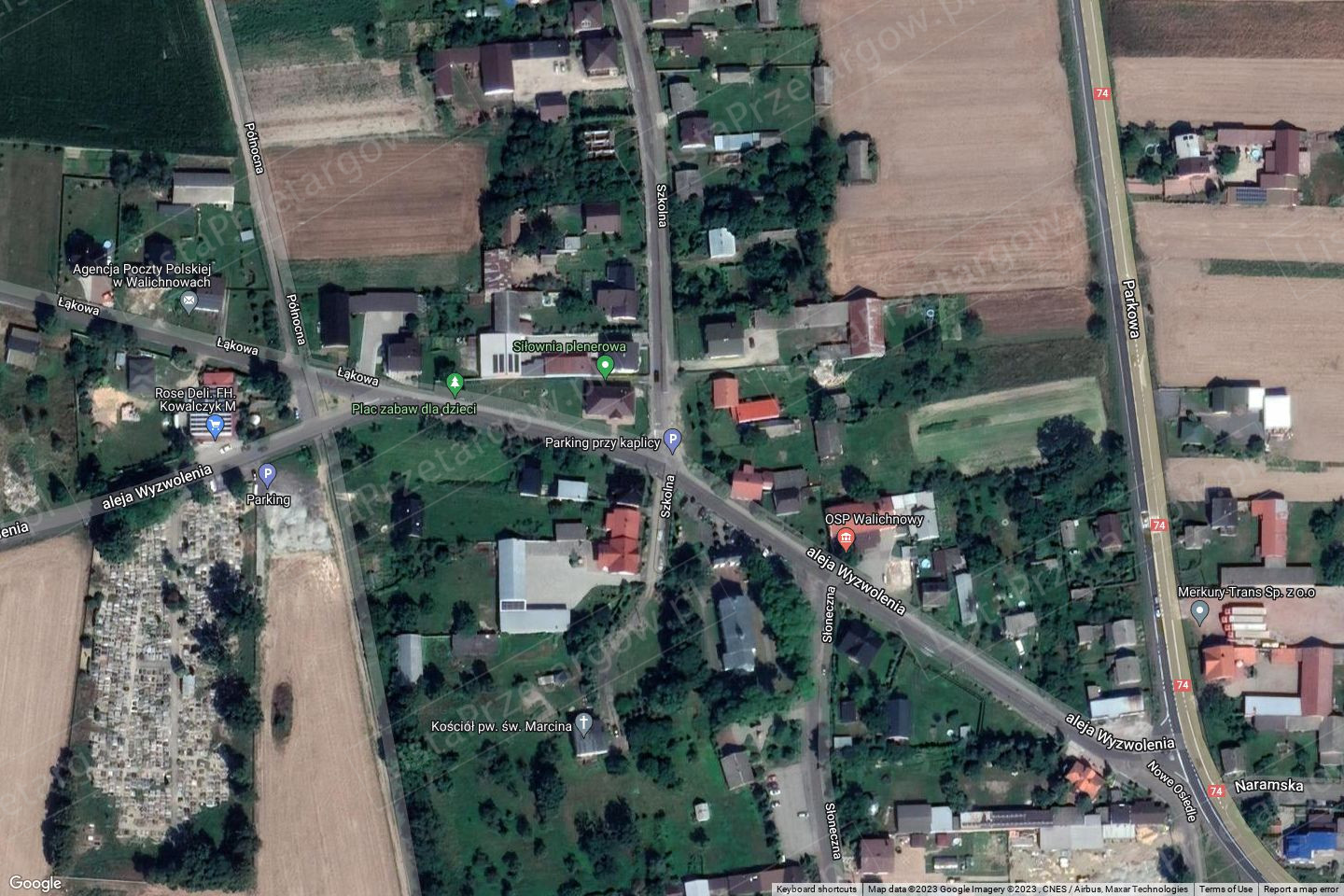 1. Opis nieruchomości: działka zlokalizowana jest w północno zachodniej części obrębu Walichnowy bezpośrednio przy drodze relacji Wieluń – Walichnowy w otoczeniu terenów zabudowy usługowej, rolnej, mieszkaniowej. Działka posiada bezpośredni dostęp do drogi. Kształt działki regularny zbliżony do prostokąta z wyciętym północnym fragmentem. Teren działki częściowo utwardzony kostką tzw. trylinką a częściowo ziemny. Działka ogrodzona płotem z elementów prefabrykowanych betonowych oraz siatką stalową. Do działki doprowadzone przyłącze wodne, energetyczne oraz znajduje się na niej szambo. Na działce znajdują się: