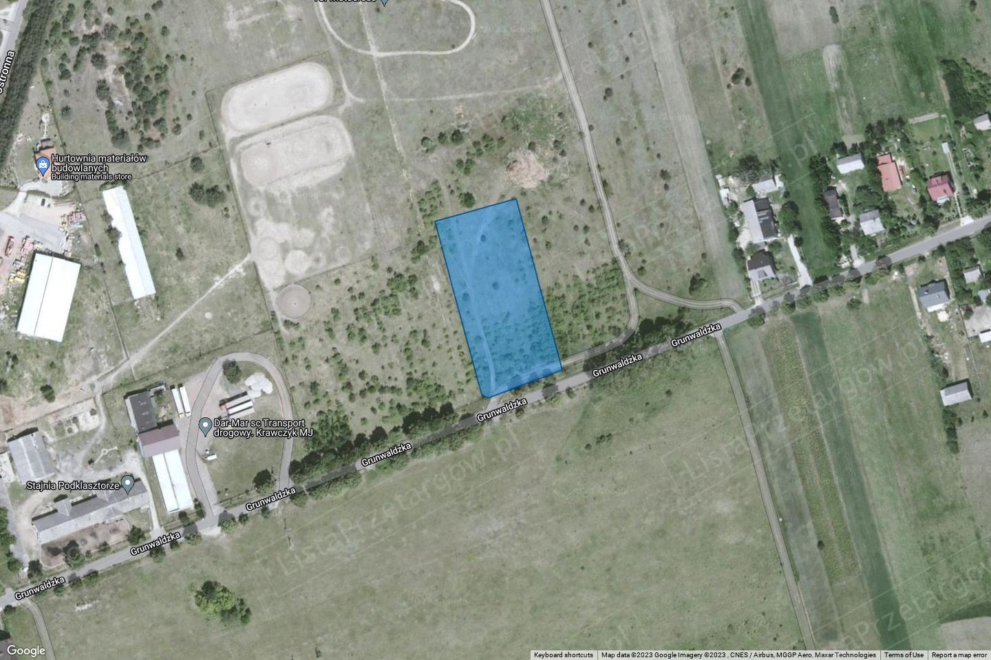 Działka niezabudowana, nieogrodzona, obsługa komunikacyjna poprzez projektowany zjazd indywidualny z drogi gminnej ul. Grunwaldzkiej.