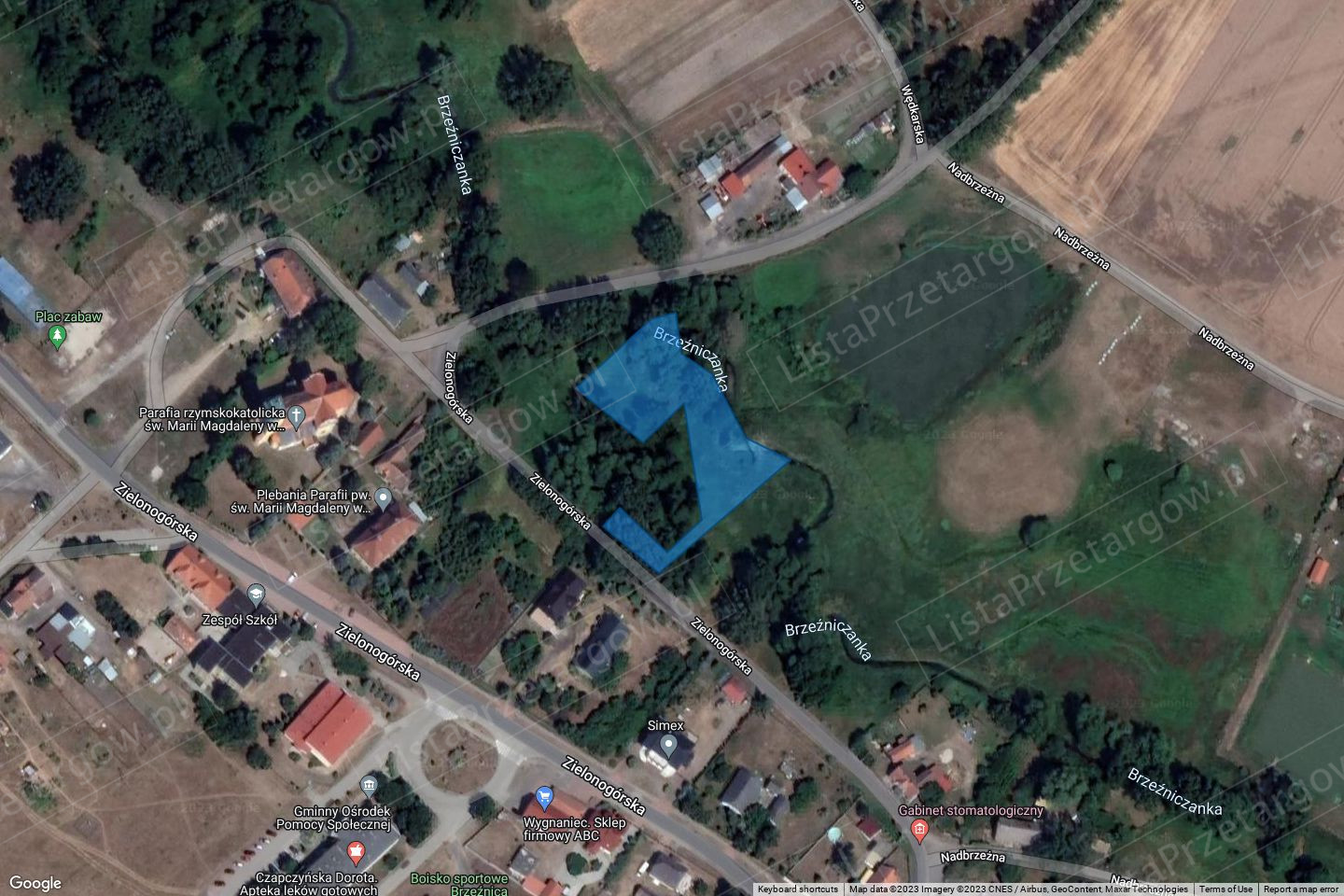 0,28 ha, księga wieczysta ZG1G 00050193/2. Działka nie jest objęta ważnym miejscowym planem zagospodarowania przestrzennego. W studium