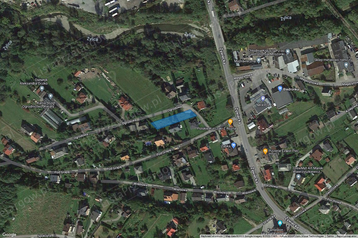 nieruchomości położonej w Łodygowicach, oznaczonej jako działki nr 5925 o pow. 0,0819 ha, której właścicielem jest Skarb Państwa, objętej księgą wieczystą XXXX/XXXXXXXX/X prowadzonej przez Sąd Rejonowy w Żywcu, V Wydział Ksiąg Wieczystych. W dziale III-cim tej księgi wieczystej wpisane jest ostrzeżenie dotyczące wzmianki o wydaniu przez Wojewodę Śląskiego decyzji o ustaleniu lokalizacji Regionalnej Sieci Szerokopasmowej Nr 3/2012 z dnia 14 listopada 2012r. znak: IFXIII.747.5.2012 dla inwestycji pn: „Śląska Regionalna Sieć Szkieletowa relacja: Bielsko-Biała- Żywiec; łączna długość relacji 26,4 km” dla działki nr 184, jednakże wpis ten nie dotyczy działki nr 5925 przeznaczonej do zbycia.