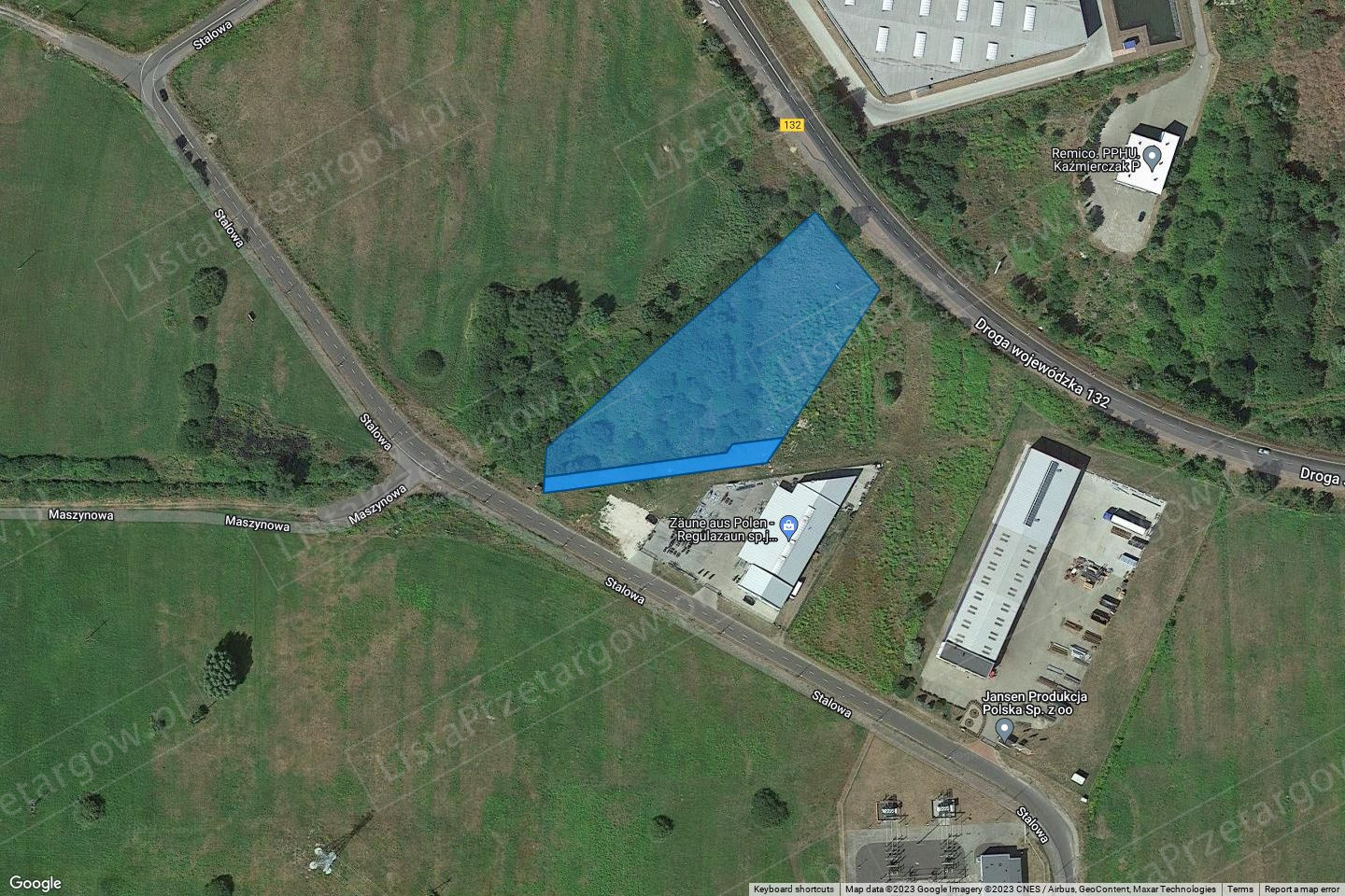 Nieruchomość położona w części funkcjonalnej miasta Witnica w obszarze zabudowy produkcyjno-przemysłowej (podstrefa KSSSE). Działka posiada dostęp do drogi publicznej: drogi gminnej nr 103956F. Dojazd drogą utwardzoną asfaltową – ul. Stalową. Kształt nieruchomości średnio regularny, teren delikatnie zróżnicowany, niezabudowany, porośnięty roślinnością trawiastą oraz zadrzewiony. Od strony północnej graniczy z ciekiem wodnym, drogą wojewódzką, od strony wschodniej graniczy z zabudową produkcyjną, od strony południowej i zachodniej usytuowana jest mała trafostacja. W bliskim sąsiedztwie znajduję się rów w obszarze nieruchomości teren bagnisty z zastojem wody, co powoduje poziom wód gruntowych w terenie oraz utrudnienia w zabudowie ze względu na prawdopodobną konieczność wymiany gruntu. terenie nieruchomości nie wyklucza się wystąpienia elementów uzbrojenia podziemnego i budowli podziemnych oraz odpadów wtórnych, takich jak wysypisko śmieci, gruzu, materiałów budowlanych oraz innych odpadów i zanieczyszczeń - nie uwidocznionych na mapie. Ewentualne koszty związane z ich usunięciem i uporządkowaniem terenu, a także koszty związane z realizacją inwestycji na takim terenie obciążają nabywcę. Uzbrojenie: teren posiada w sąsiedztwie przy granicach przebiegające sieci techniczne: sieć elektroenergetyczna, sieć wodociągowa, sieć kanalizacyjna, sieć gazowa, do dociągnięcia z pasa drogowego ul. Stalowej; sieć kanalizacji deszczowej z pasa drogowego ul. Jana Pawła II. Przeznaczenie nieruchomości: Nieruchomość jest objęta miejscowym planem zagospodarowania przestrzennego. Działki 971/53 i 979/45 przeznaczone są na tereny działalności produkcyjnej, składy i magazyny, hurtownie, usługi komunikacji, usługi komercyjne, zakłady drobnej wytwórczości – symbol zapisu planu 3 P,U. Działki 971/54 i 974/21 przeznaczone są na tereny działalności produkcyjnej, składy i magazyny, hurtownie, usługi komunikacji, usługi komercyjne, zakłady drobnej wytwórczości – symbol zapisu planu 3 P,U, oraz teren lokalizacji stacji transformatorowych 15/04kV – zapis w planie o symbolu 1E.
