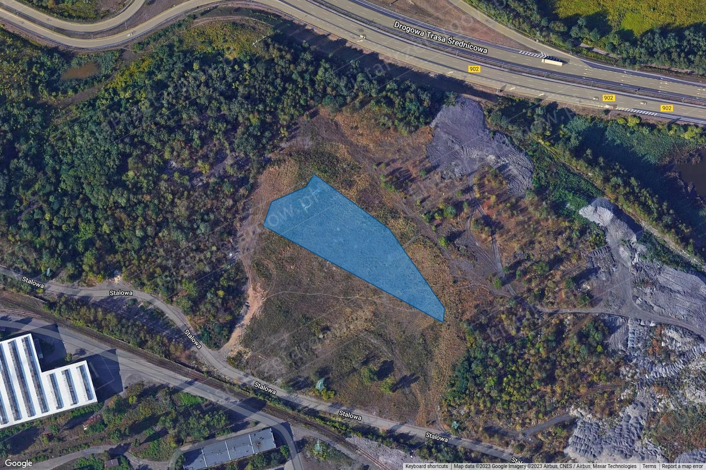 działki o nr ewidencyjnych 700/1 i 701/1, wszystkie o łącznej powierzchni 21 991 m2 zlokalizowane w rejonie ulicy Stalowej. Działki są niezabudowane, o nieregularnym kształcie, częściowo zakrzewione i zadrzewione, tworzą zwartą całość.