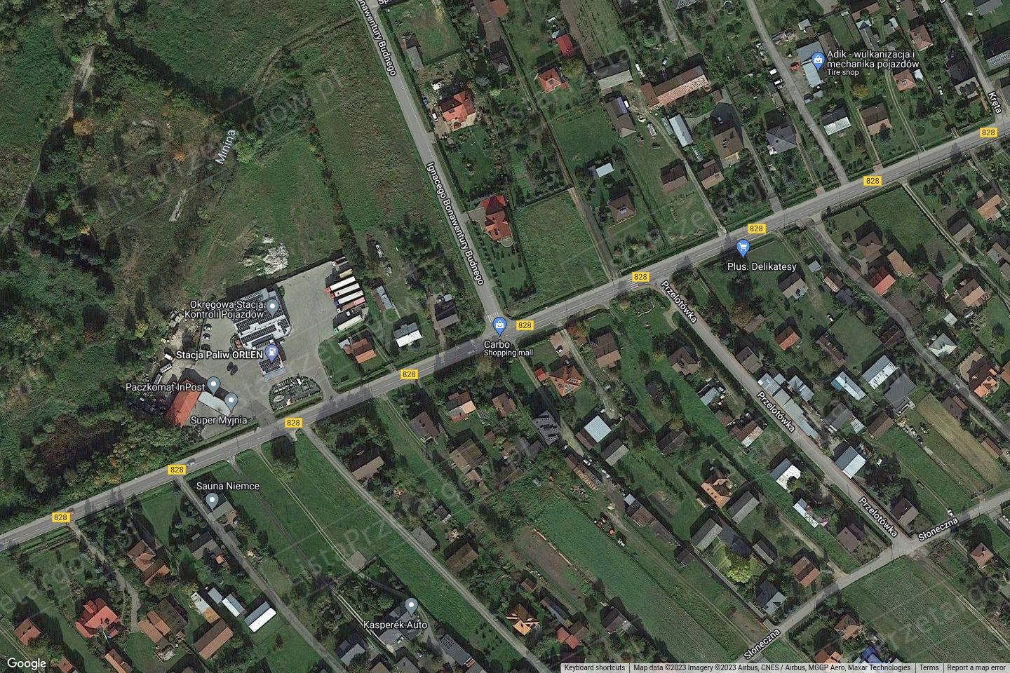 komercyjnych i terenie przemysłu, składów, baz U,P, graniczy z drogą wojewódzką – główną ruchu
