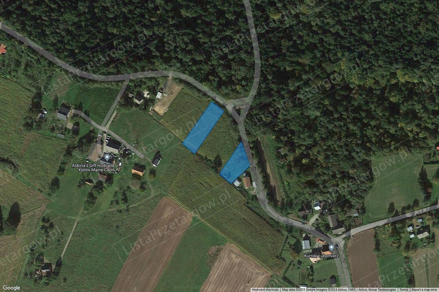 1. Przedmiotem sprzedaży jest nieruchomość gruntowa, niezabudowana, położona w miejscowości Lubomierz (gm. Łapanów, pow. bocheński, woj. małopolskie); działki gruntu o numerach ewidencyjnych 178/5 oraz 178/8 (obręb: 0009 Lubomierz) o łącznej powierzchni 0,2300 ha, dla której Sąd Rejonowy w Bochni, V Wydział Ksiąg Wieczystych prowadzi księgę wieczystą o numerze XXXX/XXXXXXXX/X;