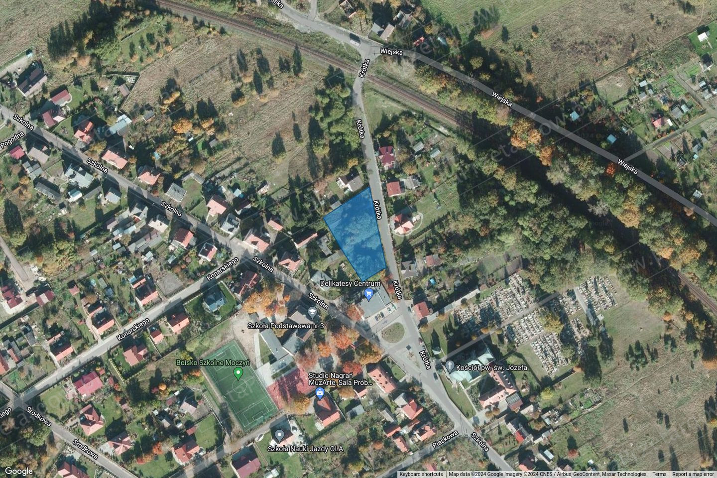 Nieruchomość niezabudowana i niezagospodarowana. Kształt nieruchomości regularny, zbliżony do trapezu. Powierzchnia nieruchomości płaska, porośnięta drzewami i krzewami, których usunięcie, przy uwzględnieniu obowiązujących przepisów prawa, należeć będzie do inwestora. Sieci uzbrojenia znajdują się w ul. Krótkiej. Bezpośrednie włączenie do sieci uzbrojenia należeć będzie do inwestora. W sąsiedztwie nieruchomości zabudowa mieszkaniowa jednorodzinna i usługowa, budynki użyteczności publicznej oraz tereny kolejowe. W nieruchomości, przy jej zachodniej granicy znajduje się sieci uzbrojenia – wodna (woA32 i wo32) oraz kanalizacyjna (Kd160), prowadzące do nieruchomości sąsiedniej, oznaczonej numerem ewidencyjnym 2613/2. Istnienie sieci należy uwzględnić w procesie inwestycyjnym a ponadto niezbędne będzie ustalenie służebności przesyłu. Ponadto, z uwagi na ograniczoną możliwość dostępu do zbiorników bezodpływowych, wykorzystywanych przez właściciela nieruchomości sąsiedniej, oznaczonej numerem ewidencyjnym 2613/2, niezbędne będzie ustalenie służebności zapewniającej dostęp do urządzeń. Zgodnie z obowiązującym miejscowym planem zagospodarowania przestrzennego nieruchomość położona jest w obszarze oznaczonym symbolem M2 - zabudowa mieszkaniowa jednorodzinna