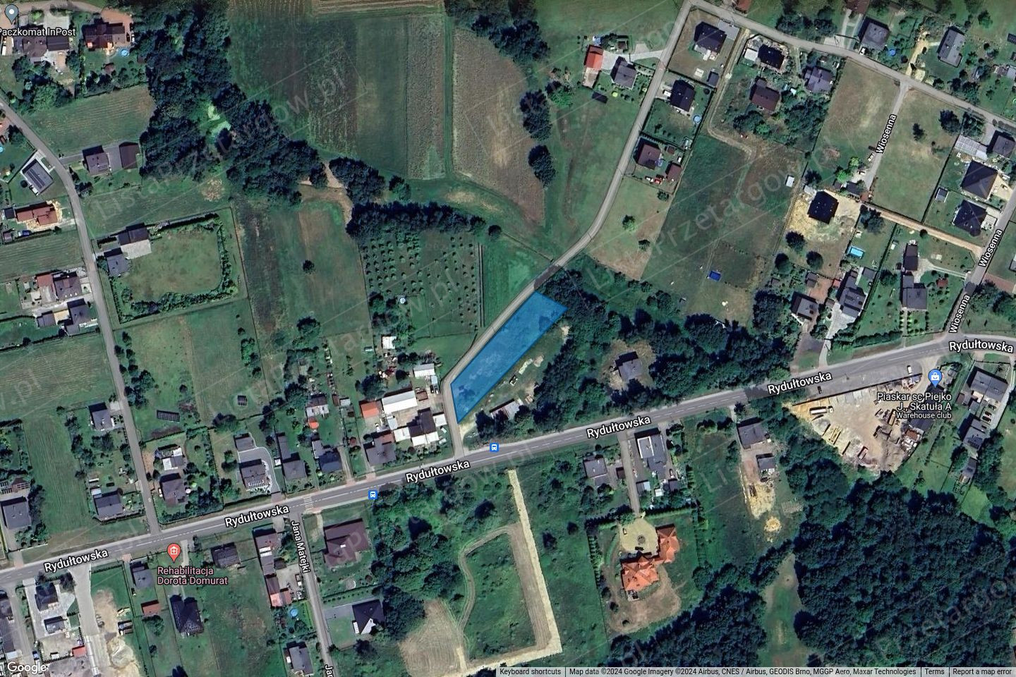 Dojazd i dojście do ww. działki bezpośrednio z drogi ul. Wiosennej. Na przedmiotowej działce znajdują się samosiejki drzew i krzewów. W przypadku konieczności wycięcia istniejącego drzewostanu nabywca nieruchomości zobowiązany będzie do jego zgłoszenia Burmistrzowi Radlina. Teren o deniwelacjach w części obejmujący skarpę, z pozostałościami po stacji Auto – Gaz.