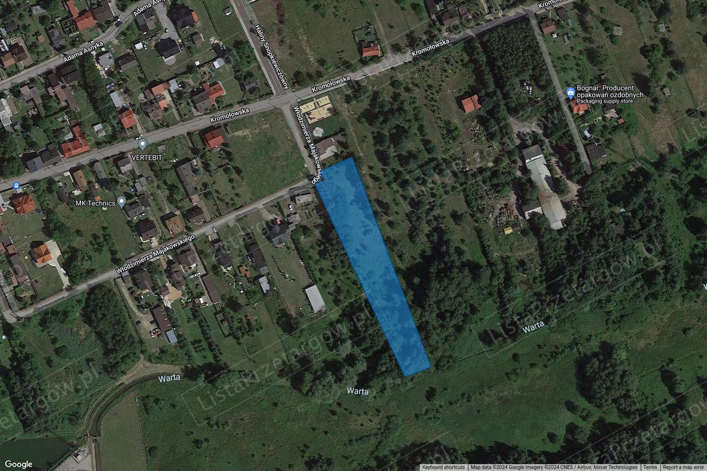 Oznaczenie nieruchomości: nieruchomość oznaczona geodezyjnie jako działka o nr ew. 419/8, obręb Łośnice o powierzchni 0,4835 ha, położona w Zawierciu przy ul. Włodzimierza Majakowskiego, księga wieczysta nr XXXX/XXXXXXXX/X, rodzaj użytku wg ewidencji gruntów: PsV, RV.