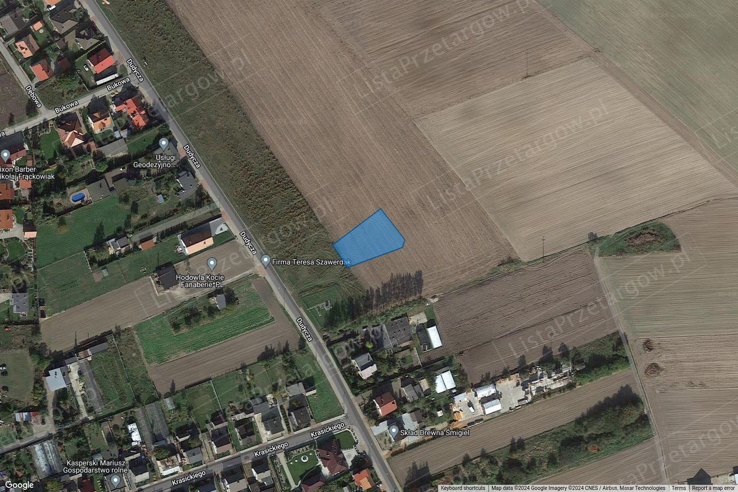 Opis nieruchomości: niezabudowana nieruchomość gruntowa, dostęp do działek stanowi droga gruntowa. Działki niezagospodarowane, teren płaski. Działki nr 1846/41, 1846/47, 1846/51, 1846/56, 1846/58 kształt nieregularny, pozostałe działki kształt regularny. Pełna sieć miejska w ulicy Dudycza.