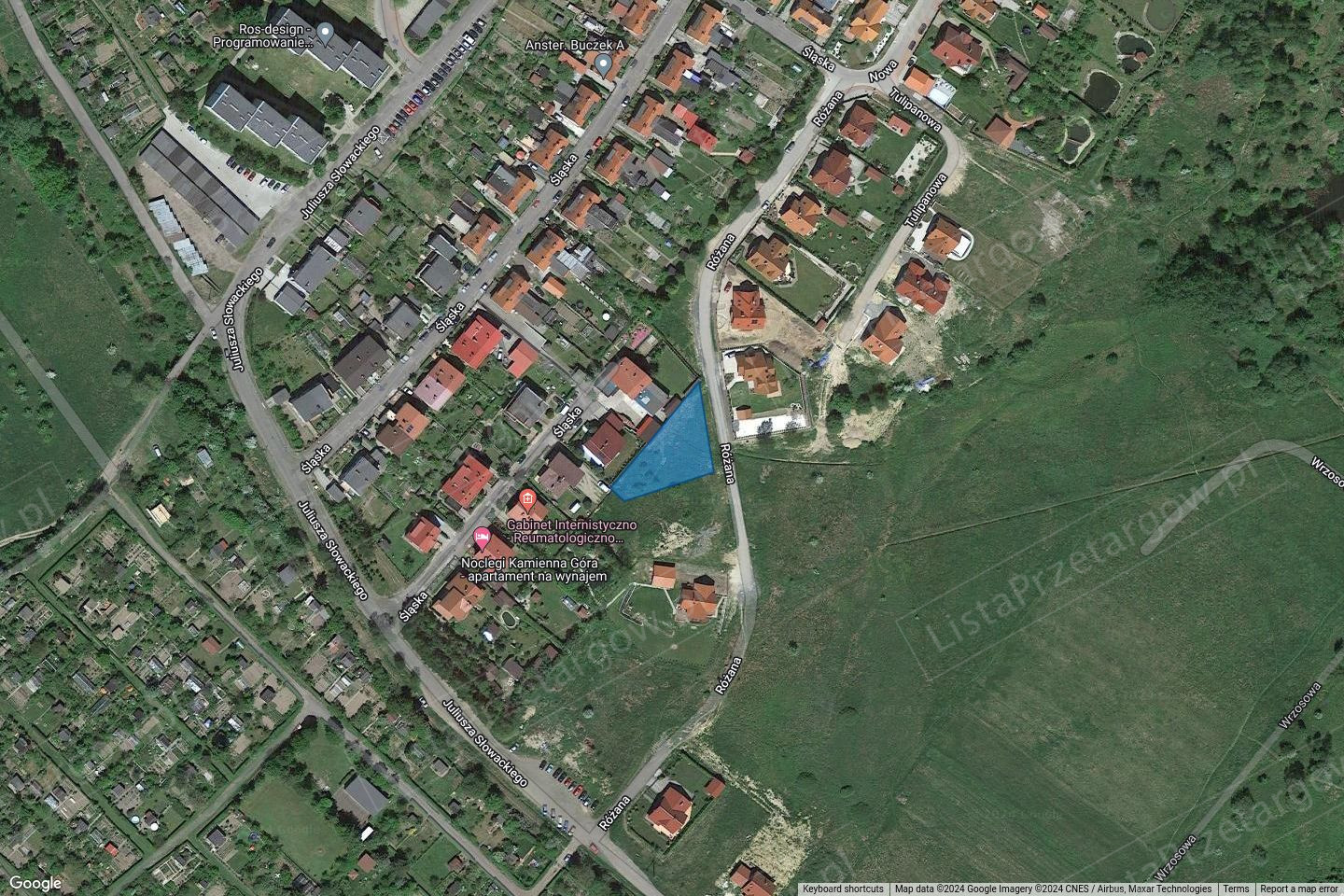 Kamienna Góra przy ul. Różanej z przeznaczeniem pod zabudowę mieszkaniową jednorodzinną: