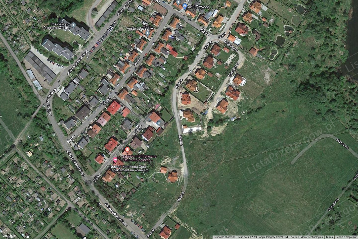 Kamienna Góra przy ul. Różanej z przeznaczeniem pod zabudowę mieszkaniową jednorodzinną: