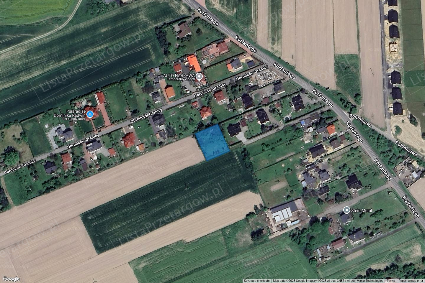 Udział wynoszący 1/2 części w prawie własności nieruchomości złożonej z dwóch działek gruntowych, niezabudowanych, położonej w miejscowości Gierałtowice. Nieruchomość składa się z dwóch działek. Działka nr 192/19 jest usytuowana w IV linii zabudowy od ul. Korfantego i II linii zabudowy od ul. Obrońców Granicy, jest ogrodzona płotem z siatki stalowej, częściowo zadrzewiona, uzbrojona w przyłącze elektryczne, z dojazdem drogą boczną na zasadzie służebności drogowej opisanej w księgach wieczystych nr XXXX/XXXXXXXX/X i XXXX/XXXXXXXX/X, częściowo utwardzoną, w końcowym odcinku nieutwardzonym. Nieutwardzony odcinek drogi częściowo przechodzi wzdłuż południowej granicy działki, po którym wykonywana jest służebność drogowa na działce nr 192/19. Na działce znajduje się studnia betonowa. Działka nr 189/19 jest usytuowana w kompleksie rolniczym na zachód od ul. Korfantego, w III linii zabudowy od ul. Obrońców Granicy, nie jest ogrodzona ani uzbrojona, stanowi grunt uprawiany rolniczo, z dostępem do drogi publicznej od strony ul. Korfantego, na zasadzie służebności drogowej opisanej w księgach wieczystych nr XXXX/XXXXXXXX/X i XXXX/XXXXXXXX/X. Wzdłuż północnej granicy działki przechodzi miedza, po której ma być wykonywana służebność drogowa na działce nr 189/19. Zgodnie z miejscowym planem zagospodarowania przestrzennego gminy Gierałtowice, zatwierdzonym Uchwałą Rady Gminy nr XLVII/350/2022 z dnia 13 kwietnia 2022 r., ogłoszoną w Dz. U. Woj. Śl. poz. 2847 z dnia 22 kwietnia 2022 r. działka nr 192/19 znajduje się w strefie oznaczonej symbolami 2MNU - tereny zabudowy mieszkaniowej jednorodzinnej z usługami; działka nr 189/19 znajduje się częściowo w strefie oznaczonej symbolami 6M,U - tereny zabudowy mieszkaniowo-usługowej, częściowo w strefie oznaczonej symbolami 4R - tereny rolne - uprawy polowe oraz częściowo w strefie oznaczonej symbolami 3KDD - tereny dróg klasy "dojazdowa". Nieruchomość znajduje się w granicach udokumentowanych złóż węgla kamiennego. W egzekucji z przedmiotowej nieruchomości stosuje się przepisy ustawy z dnia 11 kwietnia 2003 roku o kształtowaniu ustroju rolnego (Dz.U. z 2024 r. poz. 423).