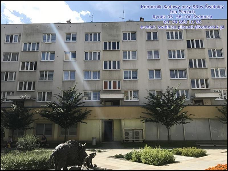 Komornik Sądowy przy Sądzie Rejonowym w Świdnicy Ida Piecuch na podstawie art. 953 kpc podaje do publicznej wiadomości, że: w dniu 28-02-2018r. o godz. 09:30 w budynku Sądu Rejonowego w Świdnicy mającego siedzibę przy ul. Okulickiego 2-4 w sali nr 318, odbędzie się pierwsza licytacja spółdzielczego własnościowego prawa dolokalu mieszkalnego o pow. użytkowej 47.30 m2, położonego na I piętrze bloku mieszkalnego wielorodzinnego położonego przy ul. Siostrzanej 3 w Świdnicy. Lokal znajduje się w zasobach Spółdzielni Mieszkaniowej w Świdnicy przy ul. M. Skłodowskiej - Curie 8. Lokal składa sie z 3 pokoi, kuchni, łazienki z WC oraz przedpokoju. Budynek zrealizowany w technologii wielkiej płyty. Ogrzewanie CO