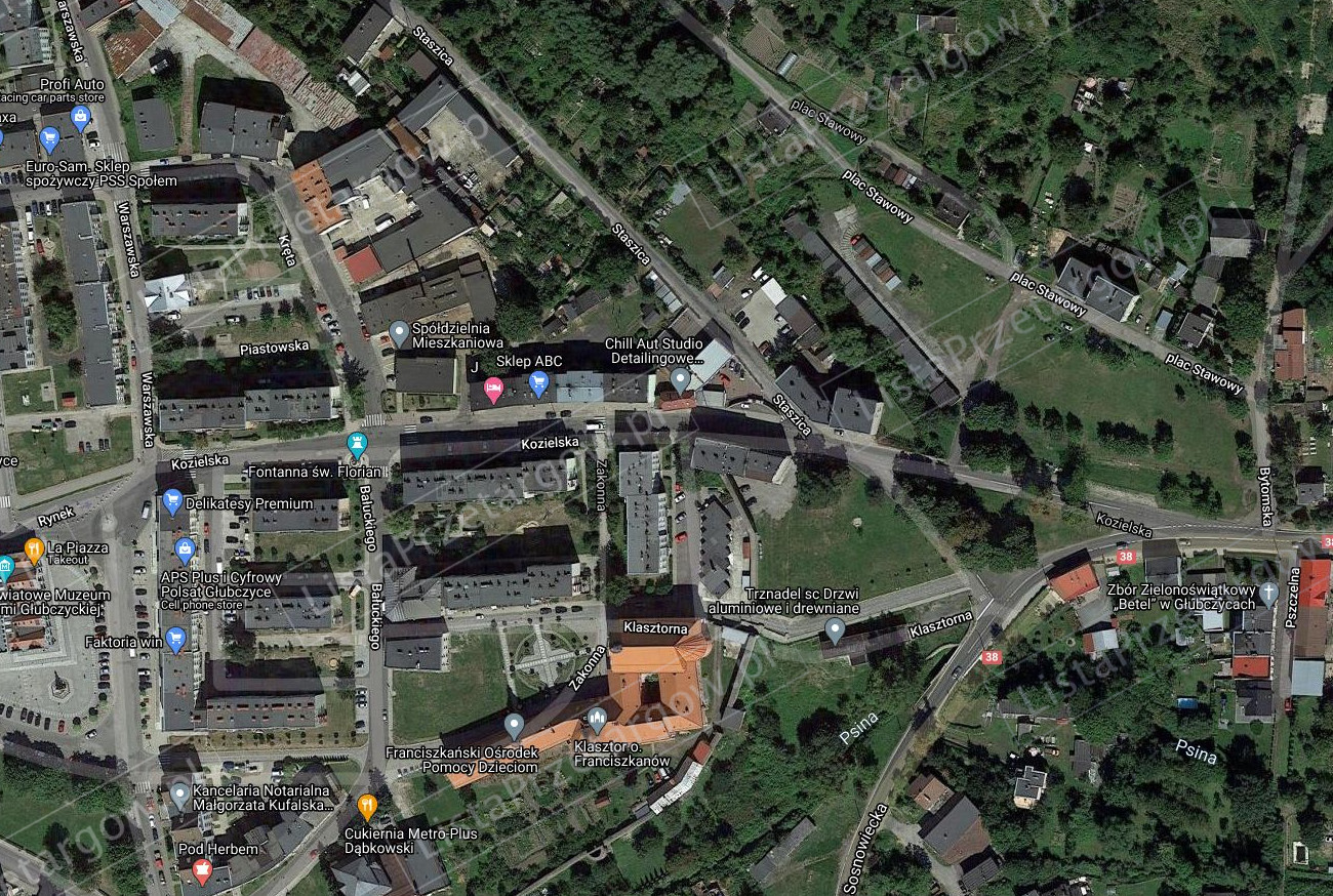 Działki nr 331/4 i nr 334/3 o łącznej powierzchni 0,3871 ha, tworzące gospodarczą całość stanowią według informacji z rejestru gruntów, zurbanizowane tereny niezabudowane, położone w Głubczycach przy ulicy Kozielskiej, w sąsiedztwie zabudowy mieszkaniowej wielorodzinnej i jednorodzinnej, w niewielkiej odległości od centrum handlowo - administracyjnego miasta. Działki położone w bezpośrednim sąsiedztwie drogi krajowej DK 38 łączącej Kędzierzyn - Koźle z granicą polsko - czeską w miejscowości Pietrowice. Działki stanowią obecnie teren zieleni. Uzbrojenie techniczne działek: sieć wodociągowa, kanalizacja sanitarna i deszczowa, energia elektryczna, gazociąg. Łączny kształt działek korzystny, regularny wielokąt, rzeźba terenu pozioma. Dojazd do nieruchomości ulicami: Kozielską, Bytomską oraz Plac Stawowy o nawierzchniach asfaltowych.