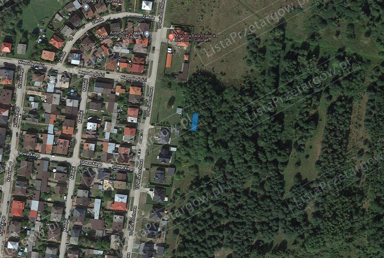 Działki powstały w wyniku podziału terenu pod osiedle mieszkaniowe. Położone są na terenach zakrzewionych samosiejką, która nie posiada wartości handlowej a likwidowany drzewostan może być wykorzystany na opał. Granice działek zostały wyznaczone i zastabilizowane przez geodetę. Działki są w kształcie prostokątów przeznaczone pod zabudowę mieszkaniową jednorodzinna, jednak nieuzbrojone. Istnieje możliwość uzbrojenia nieruchomości korzystając z infrastruktury miejskiej. Ze względu na niekorzystną szerokość są sprzedawane jako jedna nieruchomość. Dojazd do działek drogą gruntową. W miejscowym planie zagospodarowania przestrzennego działki znajdują się na terenach oznaczonych na rysunku planu symbolem „MN1,64” co stanowi tereny zabudowy mieszkaniowej jednorodzinnej. Działki są w bliskim sąsiedztwie szkoły podstawowej oraz targowiska miejskiego.