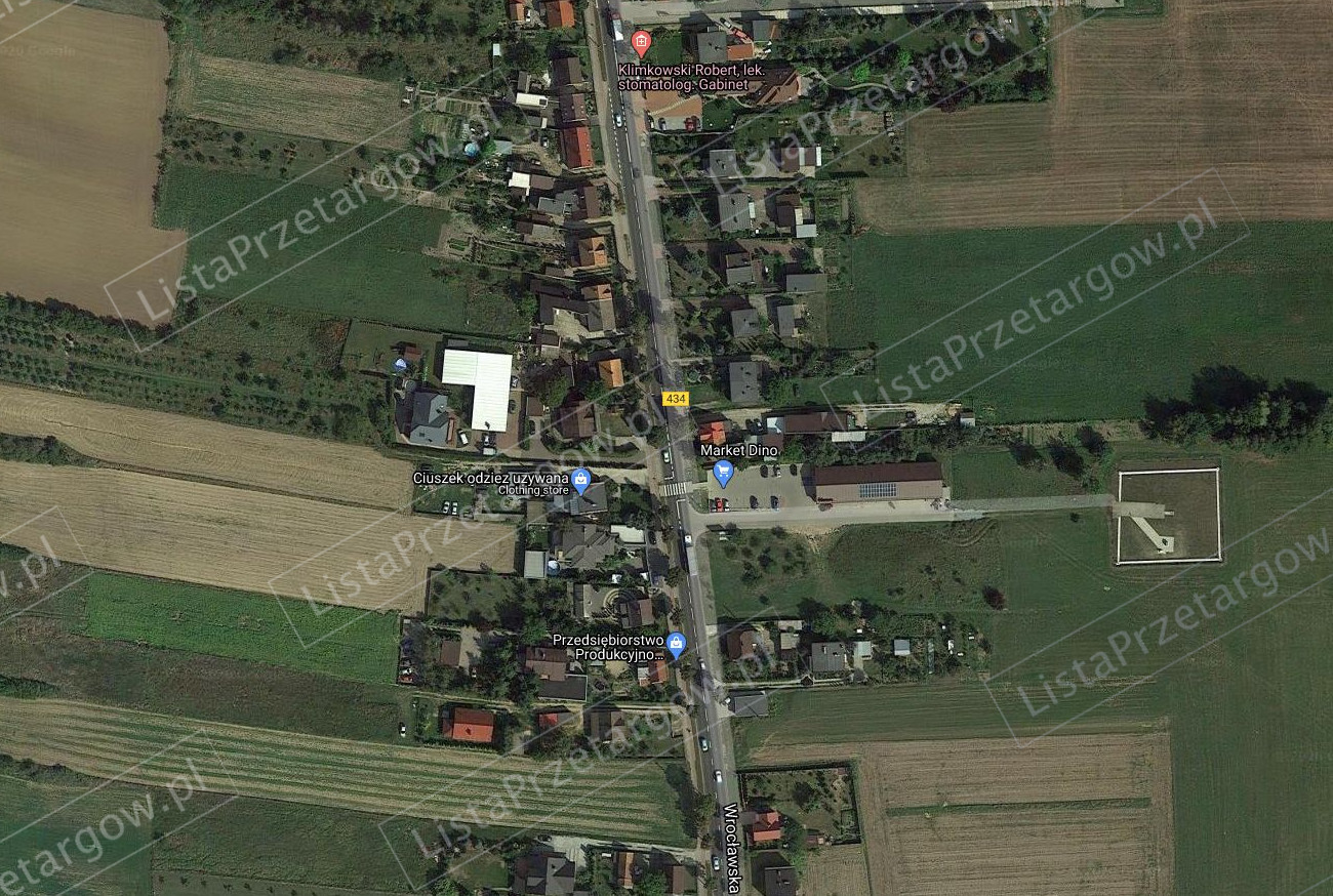Przedmiotem przetargu jest nieruchomość niezabudowana, położona na terenie z zauważalnym spadkiem w sąsiedztwie drogi wojewódzkiej nr 434. Działka nieuzbrojona, teren lokalizacji nieruchomości w pełni wyposażony w urządzenia infrastruktury technicznej w ul. Wrocławskiej. Do nieruchomości zostanie wykonane przyłącze wodociągowe i kanalizacji sanitarnej (na działce