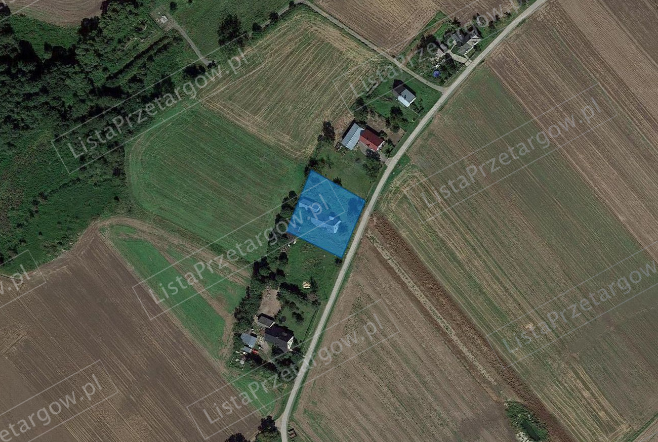 Opis: Nieruchomość zlokalizowana jest na obrzeżach wsi bezpośrednio przy zabudowaniach mieszkalnych. Kształt działki i niweleta korzystna. Na działce zlokalizowany jest budynek mieszkalny z dobudowanym budynkiem gospodarczym oraz część budynku gospodarczego. Dojazd do działki drogą utwardzoną kamieniem polnym. Uzbrojenie techniczne – wodociąg i energia elektryczna.