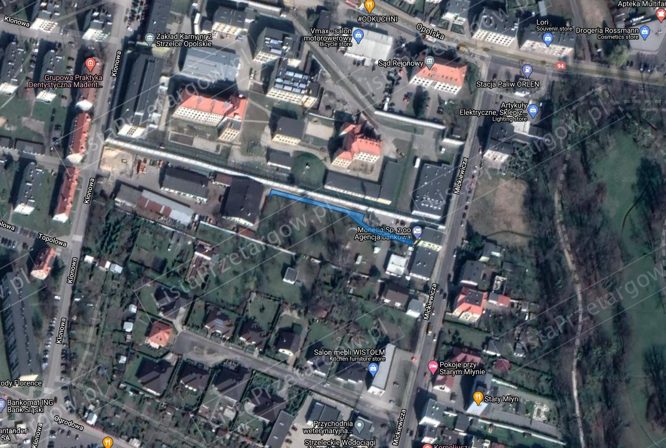 Przedmiotowa nieruchomość położona jest w województwie opolskim, powiecie strzeleckim, gminie Strzelce Opolskie, miejscowości Strzelce Opolskie przy ul. Mickiewicza w odległości, w linii prostej, około 500 m od ścisłego centrum miasta. Nieruchomość położona jest w południowej części miasta. W sąsiedztwie nieruchomości