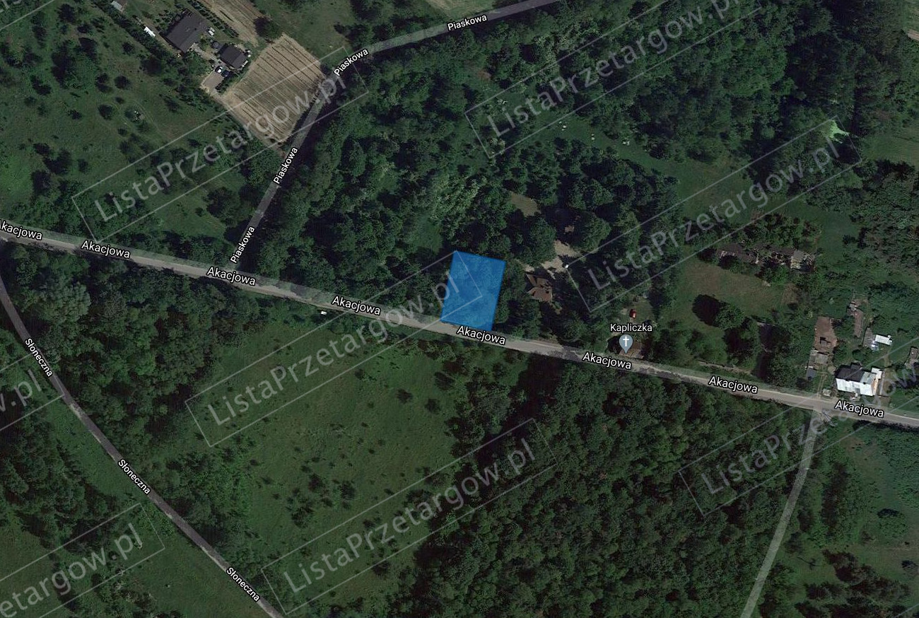 Nieruchomość niezabudowana w kształcie prostokąta. Teren częściowo zadrzewiony i zakrzewiony. Dojazd bezpośrednio z drogi publicznej ul. Akacjowej.
