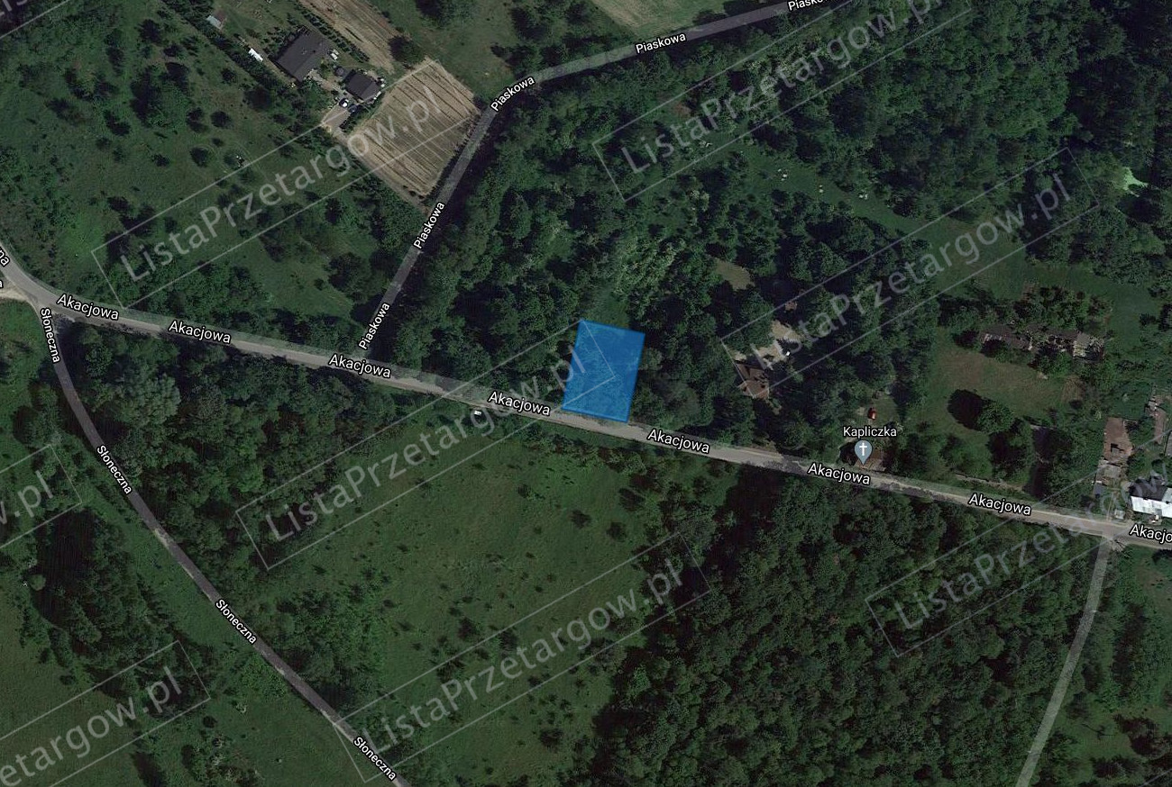 Nieruchomość niezabudowana w kształcie prostokąta. Teren częściowo zadrzewiony i zakrzewiony. Dojazd bezpośrednio z drogi publicznej ul. Akacjowej.