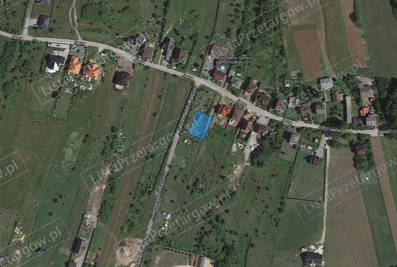 Nieruchomość położona jest w otoczeniu terenów zabudowy mieszkaniowej jednorodzinnej, dalsze otoczenie to domy jednorodzinne, kościół i Osiedle Słowiki. Nieruchomość jest niezabudowana, nieogrodzona, porośnięta trawą i krzewami, teren nierówny, od strony wschodniej skarpa. Dojazd do nieruchomości bezpośrednio z drogi publicznej asfaltowej- ulicy Ks. Prał. H. Januchty. Kształt działki prostokątny. Szerokość działki umożliwia swobodną zabudowę. Dostęp do mediów możliwy od ul. Jasnej oraz ul. Miłej.