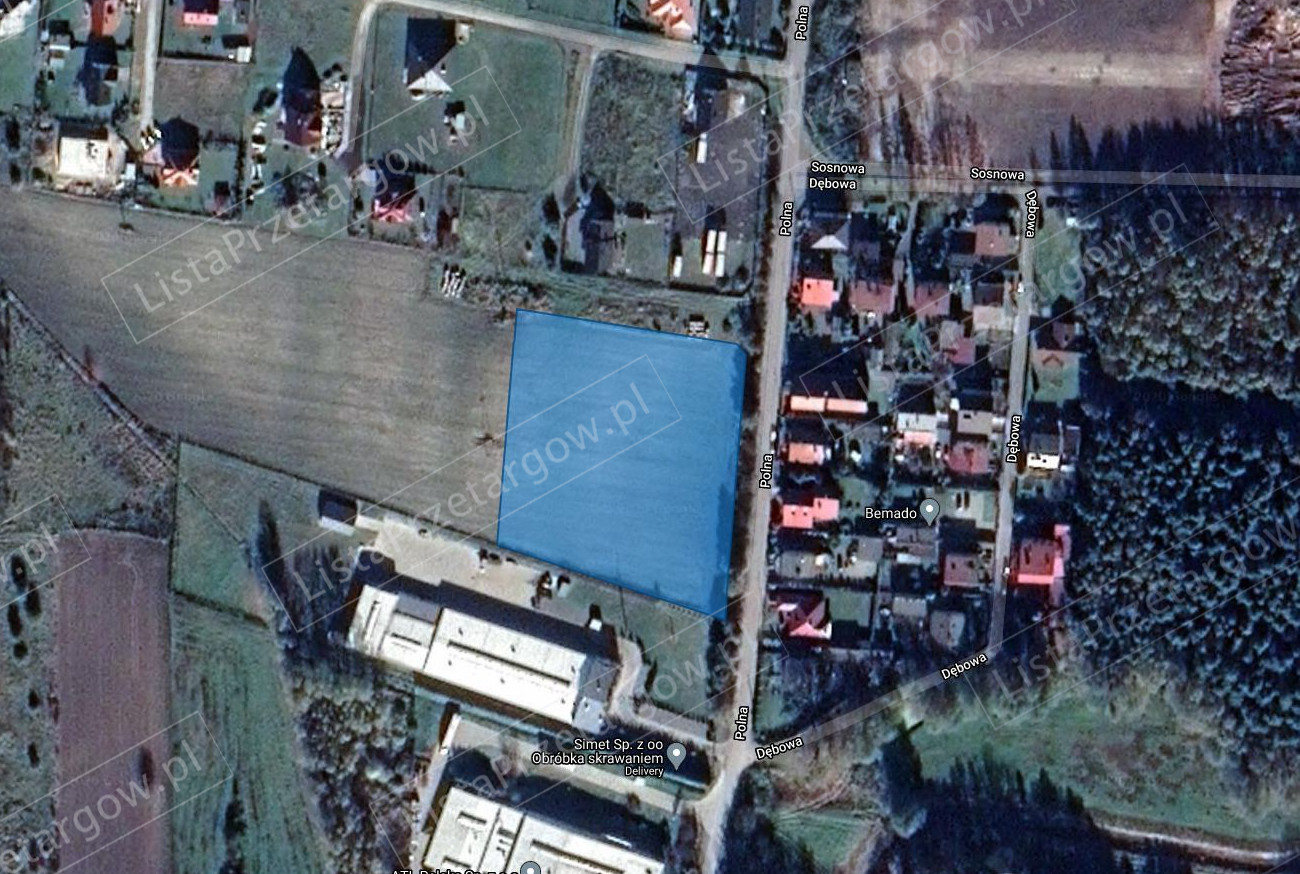 Opis nieruchomości: Nieruchomość położona jest przy ul. Polnej w miejscowości Tworóg. Działka posiada dostęp do drogi publicznej, posiada kształt równoległoboku jest niezabudowana nieogrodzona i niezalesiona obecnie jest użytkowana rolniczo. Pełne uzbrojenie znajduje się w ulicy Polnej. Sąsiedztwo stanowi przede wszystkim zabudowa jednorodzinna, tereny wolne od zabudowy, zabudowa produkcyjno usługowa oraz zakład produkcyjny. Przez przedmiotową działkę biegnie linia energetyczna średniego napięcia (20kV), wzdłuż której biegną linie rozgraniczające jej strefę techniczną. 2. Obciążenia i zobowiązania których przedmiotem jest nieruchomość: Nieruchomość obecnie objęta jest umową dzierżawy do 31.12.2021r. 3. Przeznaczenie nieruchomości w planie zagospodarowania przestrzennego: Przeznaczenie nieruchomości w planie miejscowym zatwierdzony Uchwała Nr XXI/313/2000 Rady Gminy Tworóg z dnia 30 listopada 2000 r. ogłoszoną w Dzienniku Urzędowym Woj. śląskiego nr 12 z 2000 r. poz. 259, to tereny usług wielofunkcyjnych, symbol planu UW. Obecnie działka użytkowana jest rolniczo. 4. Do ostatecznej ceny nieruchomości wylicytowanej na przetargu zostanie doliczony podatek VAT w wysokości 23% ceny, zgodnie z przepisami ustawy o podatku od towaru i usług (tekst jednolity Dz. U. Nr 177/2011 poz. 1054 ze zmianami).