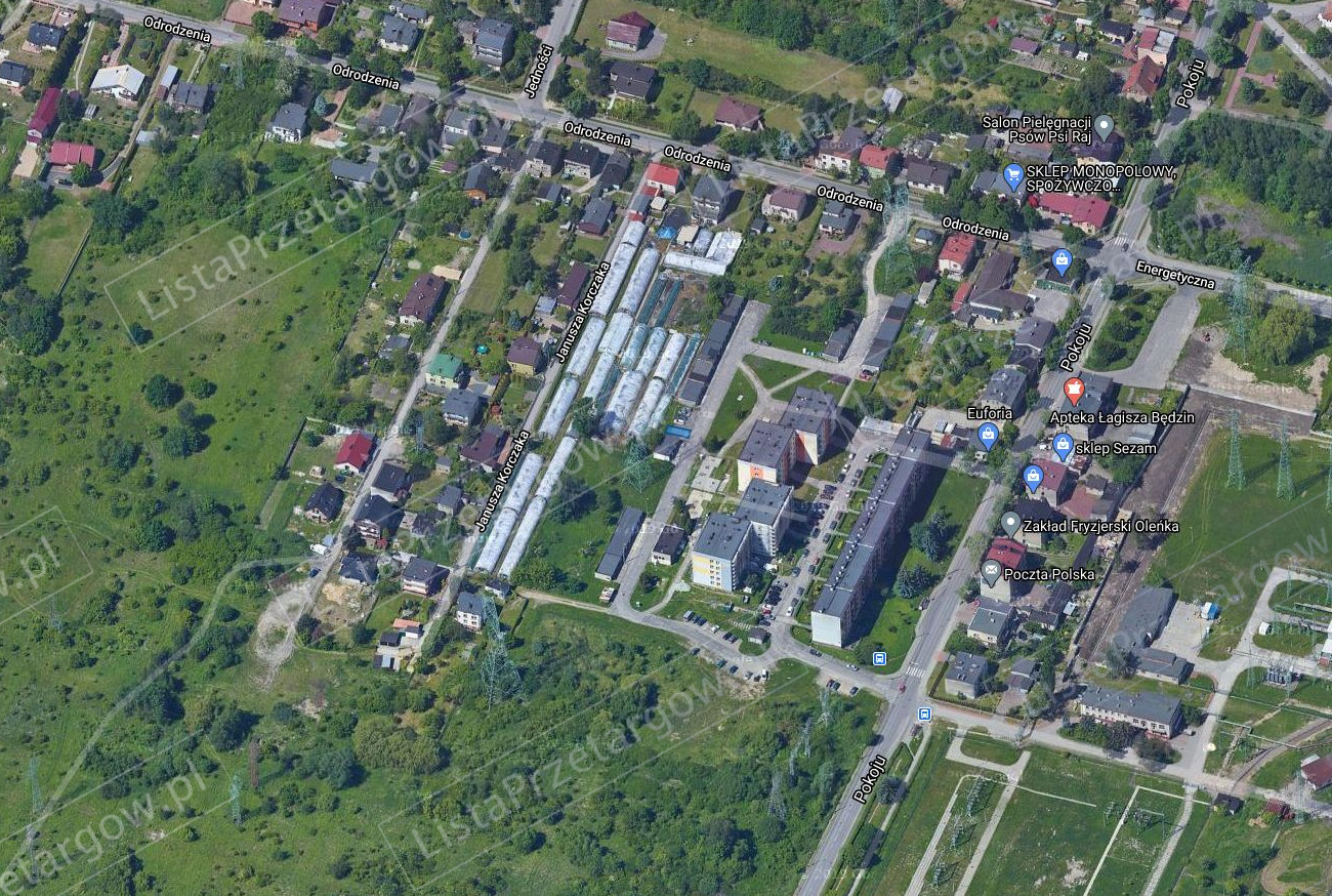 w Będzinie (obręb Łagisza) przy ul. Pokoju. Działki znajdują się w bezpośrednim sąsiedztwie zabudowy