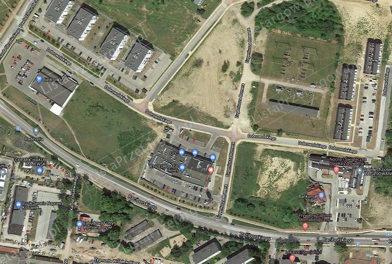 Działka niezabudowana nr 1/36 o pow. 1 529 m2, obr. 1, zapisana w KW – XXXX/XXXXXXXX/X, położona przy ul. Dobrowolskiego.