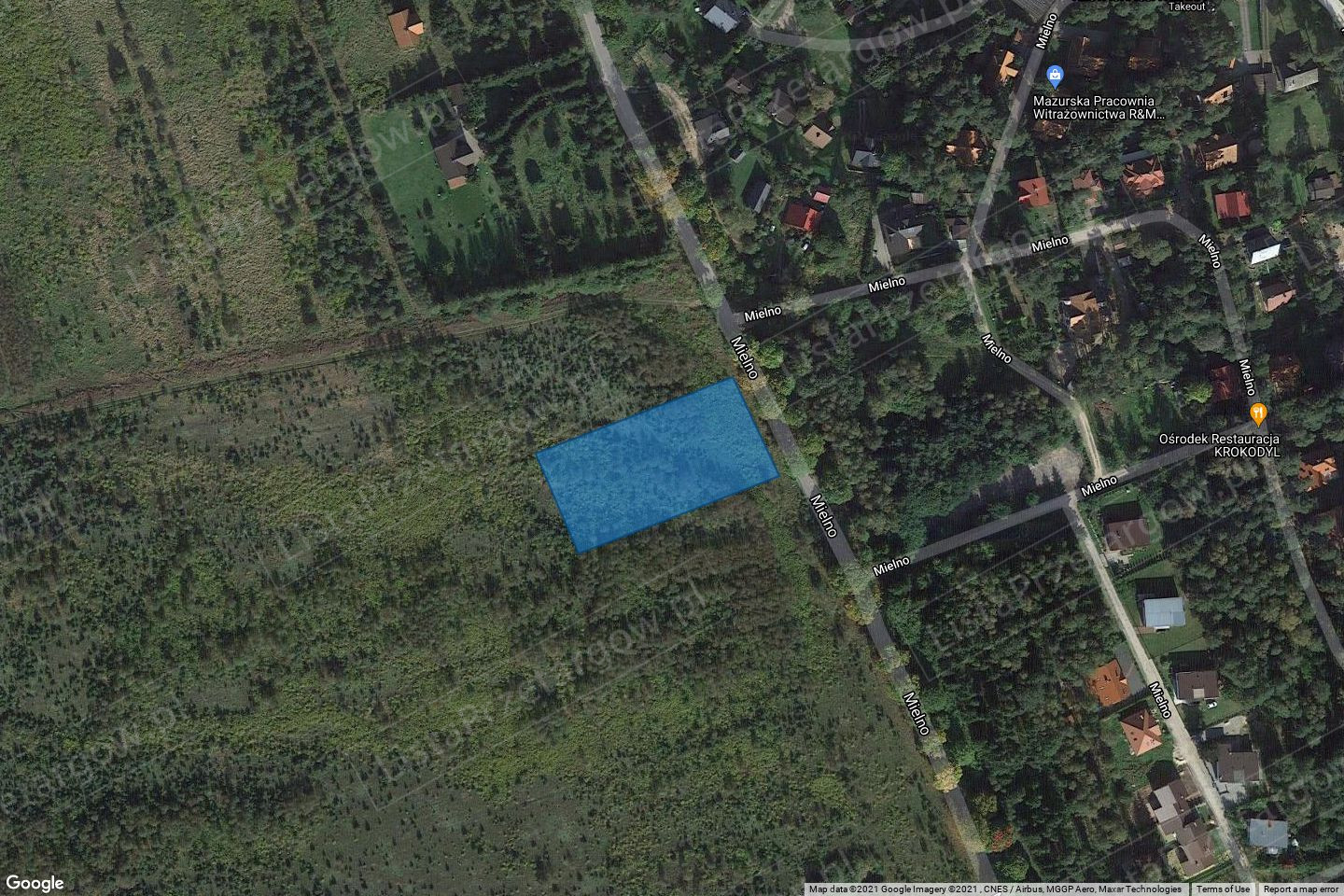Opis nieruchomości Nieruchomość gruntowa niezabudowana położona na południe od zabudowań wsi Mielno, po zachodniej stronie drogi asfaltowej biegnącej w kierunku wsi Tymawa, w dużym kompleksie nieużytków przeznaczonych w miejscowym planie zagospodarowania przestrzennego pod zabudowę rekreacyjną. Od plaży gminnej nad jeziorem Mielno działkę dzieli odległość około 300 m, a do najbliższych zabudowań jest około 100 m. Działka ma kształt zbliżony do prostokąta. Krótszym bokiem od strony wschodniej przylega do drogi asfaltowej, jednak nie posiada urządzonego wjazdu. Wjazd na działkę odbywa się nieurządzonymi w terenie drogami wewnętrznymi, udział w których wchodzi w skład przedmiotu sprzedaży. Teren działki płaski, lekko wzniesiony, w całości porośnięty kilkuletnimi samosiewami brzozy i sosny, bez wartości użytkowej. Nad wschodnią częścią działki przebiega linia energetyczna, natomiast wzdłuż drogi przez działkę - sieć wodociągowa i kanalizacyjna.