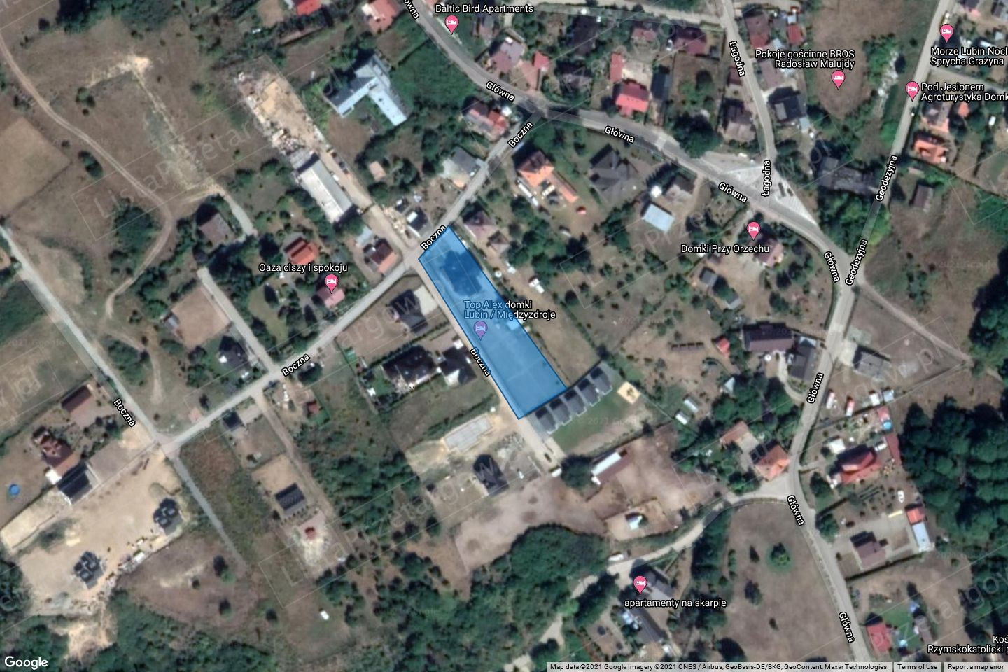 Opis nieruchomości: nieruchomość niezagospodarowana, zachwaszczona, zakrzaczona, z pojedynczymi drzewami; kształt działki nieregularny; bezpośrednie sąsiedztwo działki stanowią tereny zabudowy mieszkaniowej z zabudową towarzyszącą gospodarczą oraz tereny rolne; działka nie posiada dostępu do drogi publicznej.