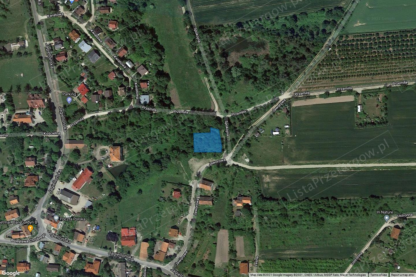 S-PsIII. Działka gruntu w kształcie wielokąta położona jest w sąsiedztwie nieruchomości przeznaczonych pod zabudowę letniskową, na terenie pagórkowatym przebiegającym po niewielkim spadku w kierunku północno-zachodnim. Dojazd do działki z drogi utwardzonej tłuczniem. Nieruchomość jest nieogrodzona, teren niezagospodarowany, porośnięty krzewami i drzewami. Działka nie posiada wybudowanych przyłączy infrastruktury technicznej, sieć wodociągowa z ul. Jaworowej. Kanalizacja w ul. Jaworowej za pomocą przepompowni przydomowej