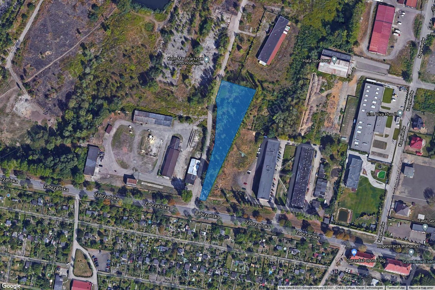 Opis nieruchomości: nieruchomość gruntowa niezabudowana położona w południowej części Bytomia, dzielnicy Szombierki przy ul. Zabrzańskiej. Skomunikowanie nieruchomości należy przewidzieć do drogi publicznej (gminnej nr 8614S), tj. ul. Zabrzańskiej, poprzez drogę wewnętrzną (częściowo asfaltową) zlokalizowaną na działkach nr 1681/5, 1764/5 i 1766/5. Szczegółowe warunki skomunikowania oraz budowy skrzyżowań zostaną podane przez Miejski Zarząd Dróg i Mostów z siedzibą w Bytomiu, przy określeniu charakteru i koncepcji zagospodarowania terenu. Nieruchomość stanowi część tzw. Pól Szombierskich, działki po byłej Hucie Bobrek. Działki usytuowane są w sąsiedztwie obiektów handlowo - usługowych, zakładu produkcyjnego, terenów poprzemysłowych, m.in. Elektrociepłowni Szombierki, torów kolejowych, zabudowy mieszkaniowej jednorodzinnej, wielorodzinnej,ogródków działkowych oraz parku Fazaniec. Nieruchomość o bardzo wydłużonym, nieregularnym kształcie. Teren płaski, częściowo zadrzewiony, zakrzewiony i porośnięty roślinnością ruderalną. Obszar o walorach przyrodniczych i krajobrazowych, powstałych w ramach samorekultywacji terenów poprzemysłowych. Infrastruktura techniczna: w pobliżu wschodniej granicy działki 1765/5 (w odległości ok. 20 m) przebiega napowietrzna sieć elektroenergetyczna wysokiego napięcia 110 kV relacji Miechowice - Szombierki 2 - Kopalnia Szombierki. Wzdłuż ulicy Kosynierów przebiega wodociąg magistralny Górnośląskiego Przedsiębiorstwa Wodociągów Katowice; sieć kanalizacyjna sanitarna, sieć ciepłownicza Ø300. Wzdłuż ulicy Zabrzańskiej zlokalizowane są linie kablowe średniego i niskiego napięcia, sieć wodociągowa Ø250, kanalizacyjna oraz przewody teletechniczne. Wzdłuż ulicy Stanisława Małachowskiego znajdują się przewody kanalizacji sanitarnej i deszczowej oraz sieć ciepłownicza Ø100. Nieruchomość znajduje się poza terenem i obszarem górniczym.