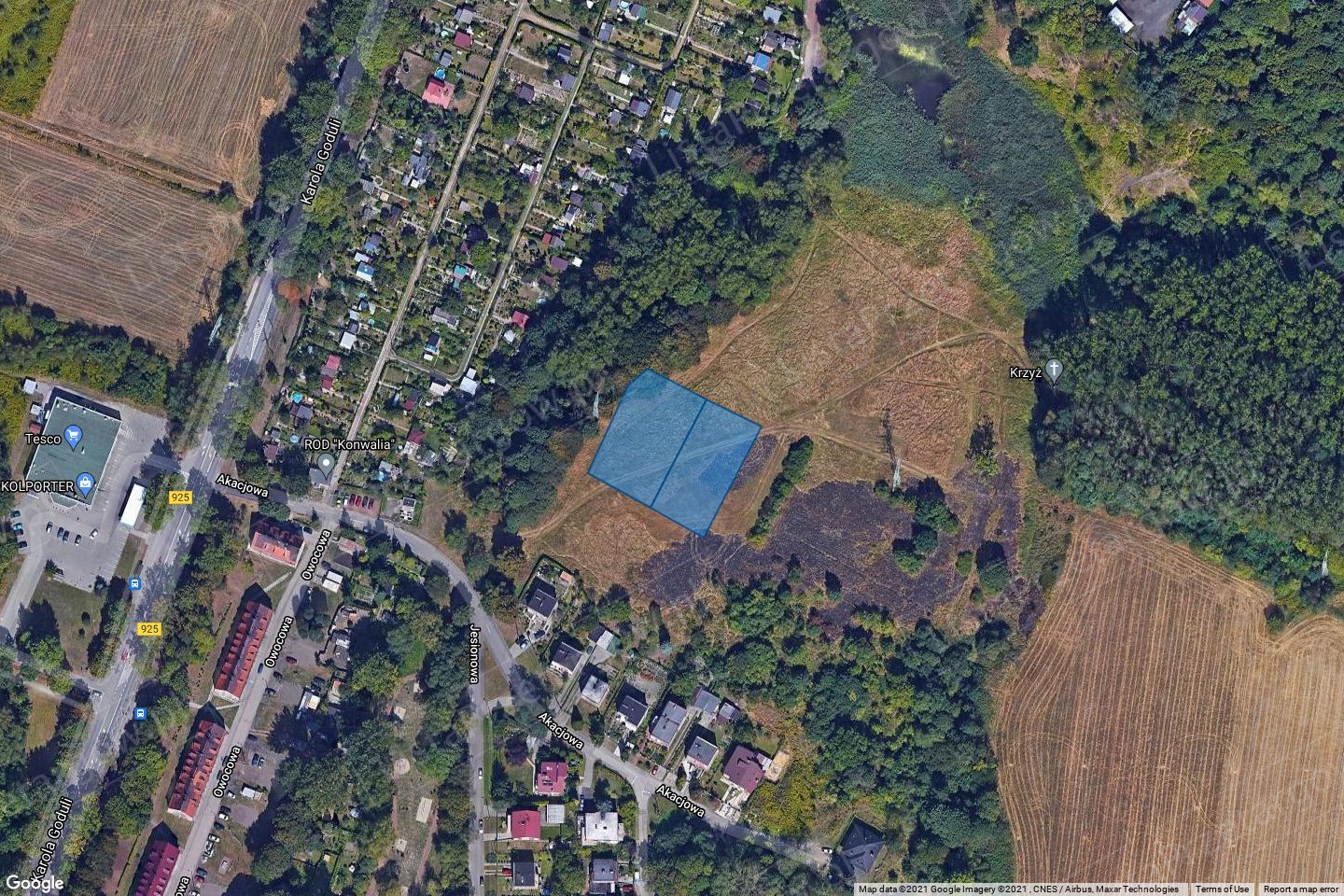 1. Przedmiotem sprzedaży w drodze drugiego ustnego przetargu nieograniczonego z przeznaczeniem pod zabudowę zgodną z ustaleniami miejscowego planu zagospodarowania przestrzennego miasta Ruda Śląska jest niezabudowana nieruchomość gruntowa własności Gminy Miasta Ruda Śląska położona w Rudzie Śląskiej - Goduli przy ul. Akacjowej, obejmująca stanowiące całość gospodarczą działki o łącznej powierzchni 2721 m2, oznaczone numerami geodezyjnymi: