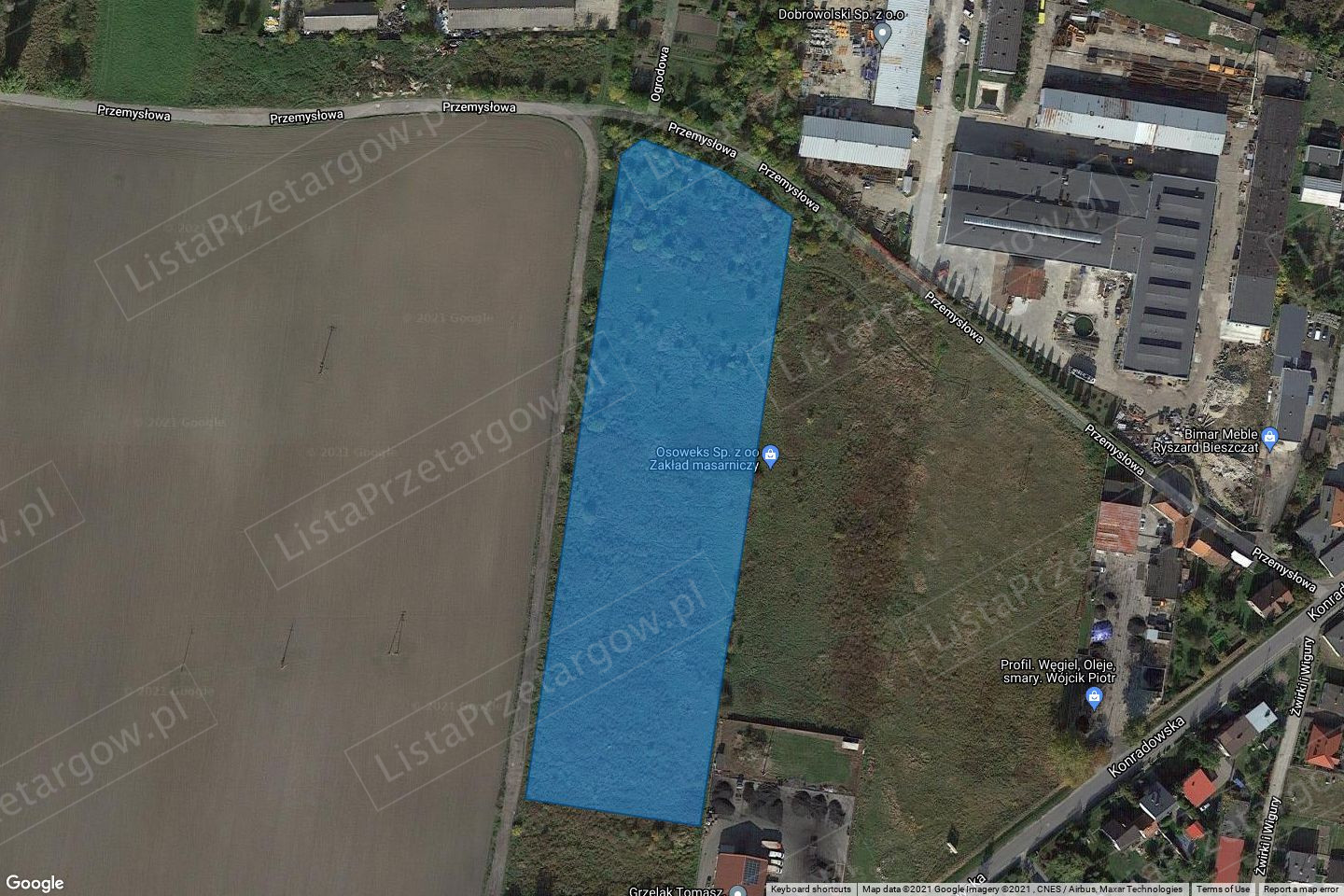 Nieruchomość położona w miejscowości Wschowa – rejon ulicy Konradowskiej. Lokalizacja nieruchomości dobra w pośredniej części miasta. Działki położone pośród innych działek zabudowanych i niezabudowanych. Kształt nieruchomości regularny, zbliżony do prostokąta. Działki posiadają dobre warunki do zagospodarowania. Teren nieruchomości płaski.