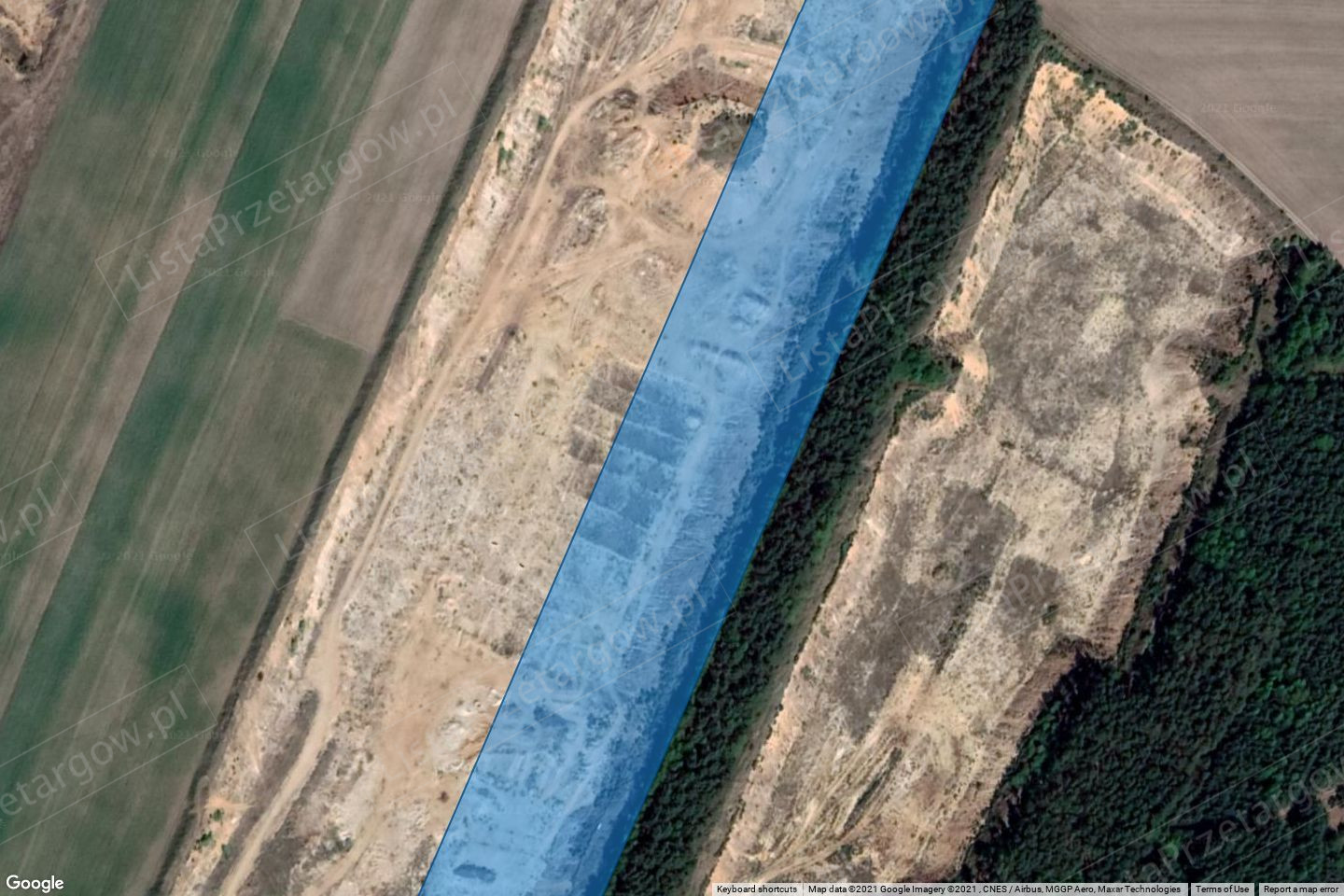 Działka nr ewid. 62 o powierzchni 3,6100 ha. Klasa użytków: LsV, N, RVI. Działka o kształcie prostokąta. W części położonej przy drodze dojazdowej występują nieliczne zadrzewienia (gdzie nie były prowadzone prace wydobywcze). W drugiej części działki (od strony wsi Ligota) przez działkę przebiega napowietrzna linia energetyczna. Teren zgodnie z obecnym przeznaczeniem ma zostać poddany rekultywacji w kierunku leśnym. Dojazd nieutwardzoną drogą publiczną. Działka ta sąsiaduje z inymi działkami stanowiącymi własność dłużnej Spółki, na terenie których zostały nielegalnie zakopane odpady w nieustalonej ilości. Z uwagi na położenie nie można wykluczyć, że na działce również mogły zostać zakopane odpady.