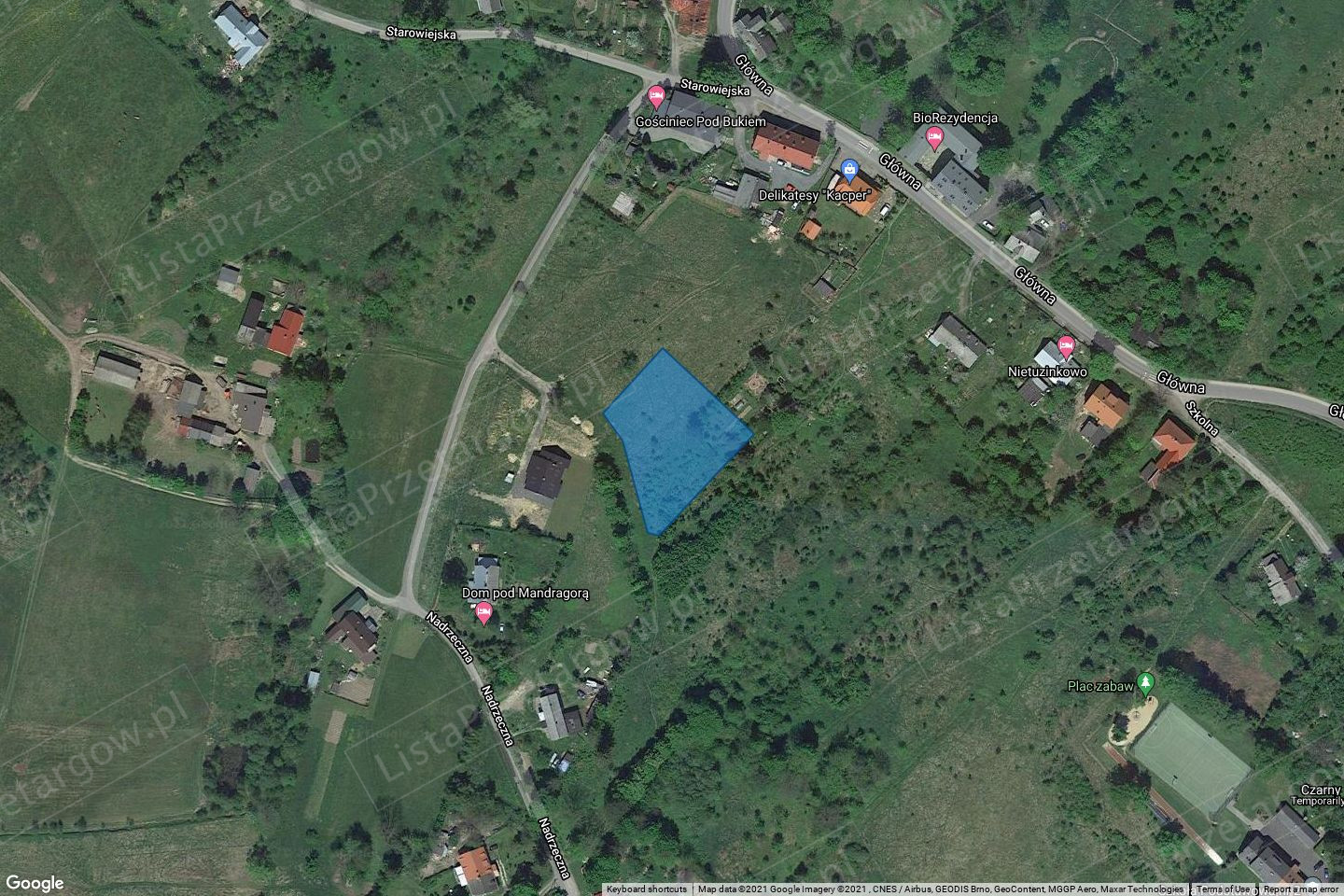 Okazanie granic nieruchomości może nastąpić na koszt i staraniem Nabywcy. Nieruchomość gruntowa niezabudowana, położona w Swieradowie-Zdroju (dzielnica Czerniawa). Działka w kształcie figury nieforemnej (zbliżonej do trapezu), położona na terenie równym. Działka niezagospodarowana, porośnięta porostem miękkim i twardym, miejscami krzakami i samosiejkami drzew.