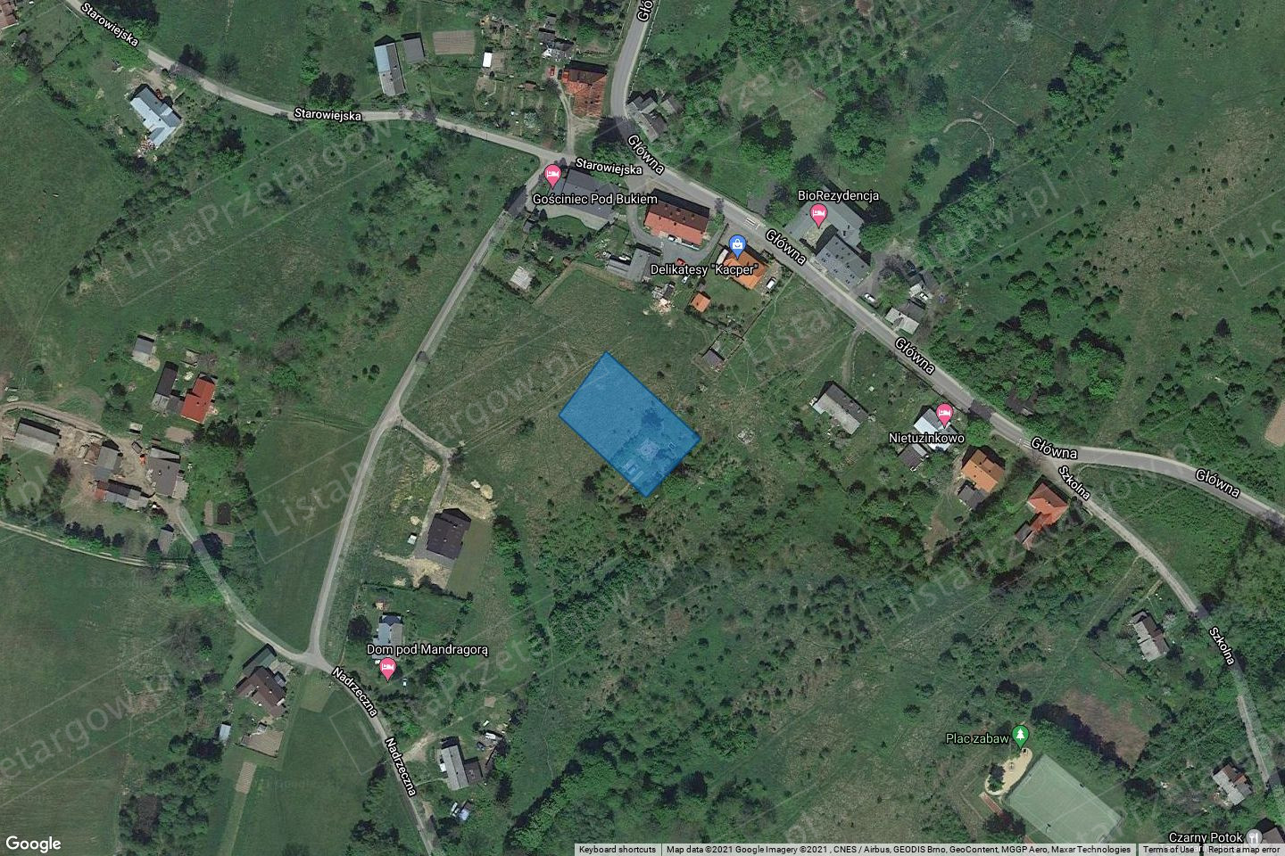 Okazanie granic nieruchomości może nastąpić na koszt i staraniem Nabywcy. Nieruchomość gruntowa niezabudowana, położona w Świeradowie-Zdroju (dzielnica Czerniawa). Działka w kształcie figury foremnej (zbliżonej do prostokąta), położona na terenie równym. Działka częściowo niezagospo darowana, porośnięta porostem miękkim i twardym, miejscami krzakami i samosiejkami drzew. Częściowo ogro dzona i zagospodarowana ogrodem. Na działce zagospodarowanej znajduje się obiekt niemieszkalny.