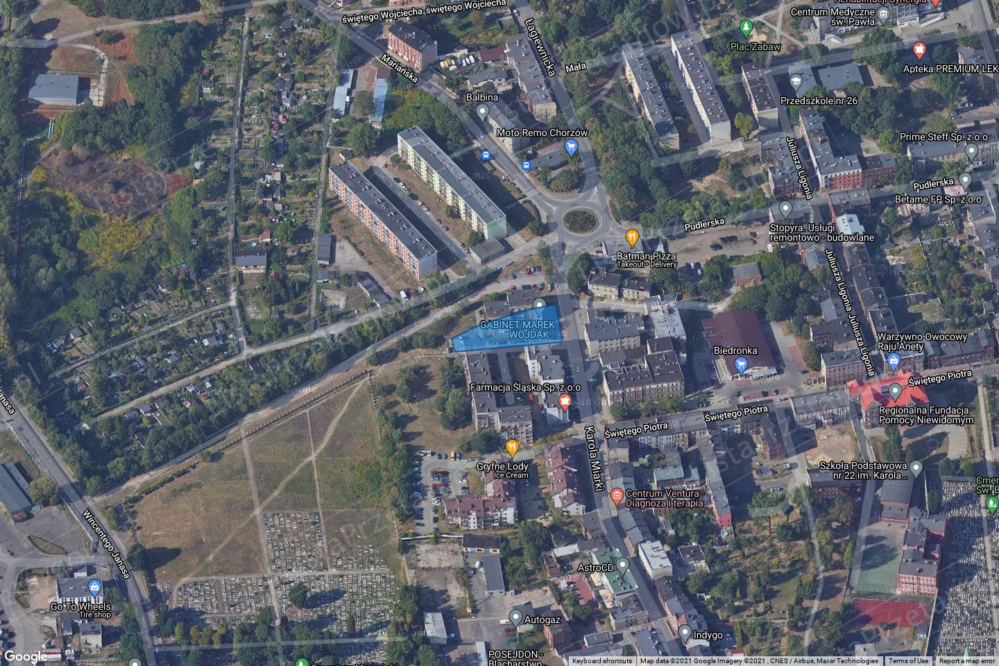 Dane geodezyjne: 60/1 o powierzchni 1.126 m2, dla której Sąd Rejonowy w Chorzowie prowadzi księgę wieczystą pod numerem XXXX/XXXXXXXX/X.