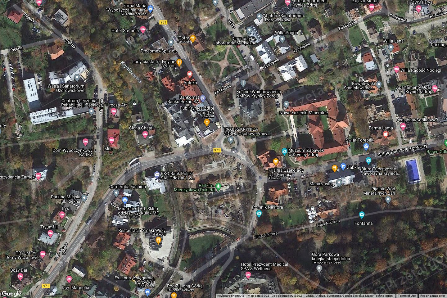 Działki ewidencyjne 403/27 i 403/38 zlokalizowane są niedaleko zbiegu ulic Czarny Potok i Kraszewskiego, która stanowi drogę wojewódzką nr 971 w kierunku Muszyny. Działki znajdują się na zboczu o wystawie wschodniej, w odległości ok. 2 km od centrum Krynicy-Zdroju i ok 2,5 km od terenów sportowych i rekreacyjnych (Kolej Gondolowa Jaworzyna Krynicka). Dojazd do działek stanowi ulica Halna, łącząca się z ulicą Kraszewskiego. Działki są niezabudowane, znajdują się na wzniesieniu, stanowią teren zielony częściowo zakrzaczony. Sąsiedztwo działek od strony północnej stanowi zabudowa mieszkaniowa jednorodzinna, natomiast od zachodniej – tereny zielone. W dalszej odległości w części południowej i wschodniej znajdują się budynki mieszkalne wielorodzinnne, skład budowlany, budynki usługowe, szpital, ośrodek zdrowia i tereny zielone. Działka nr 403/27 o pow. 850m² posiada granice regularne w kształcie zbliżonym do kwadratu, od strony zachodniej posiada dostęp do drogi wewnętrznej, nieurządzonej. Teren działki pokryty krzewami tarniny.
