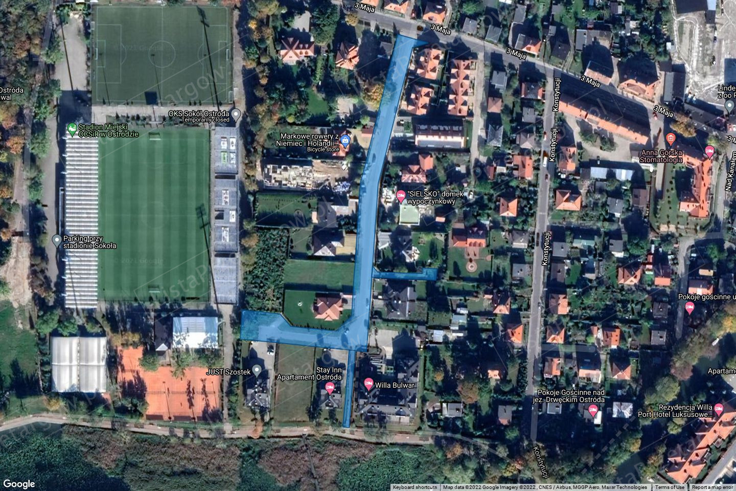 udziału 48/10000 części w prawie wieczystego użytkowania nieruchomości gruntowych stanowiących działki nr 169/24, 169/28 i 169/31 o łącznej pow, 0.4353 ha położonych w Ostródzie przy ulicy 3 Maja, niezabudowanych stanowiących fragment ulicy i ciągów pieszych, KW nr XXXX/XXXXXXXX/X, wartość oszacowania – 1.087,00 zł netto