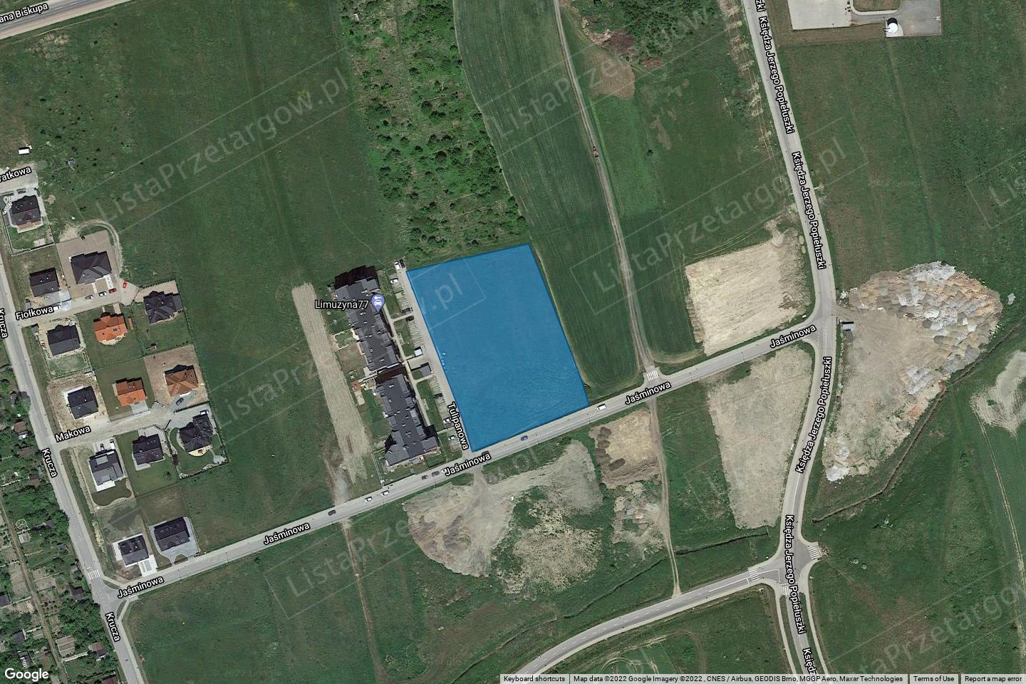 kształt zbliżony do prostokąta położona przy ulicy Jaśminowej, w której znajdują się sieci