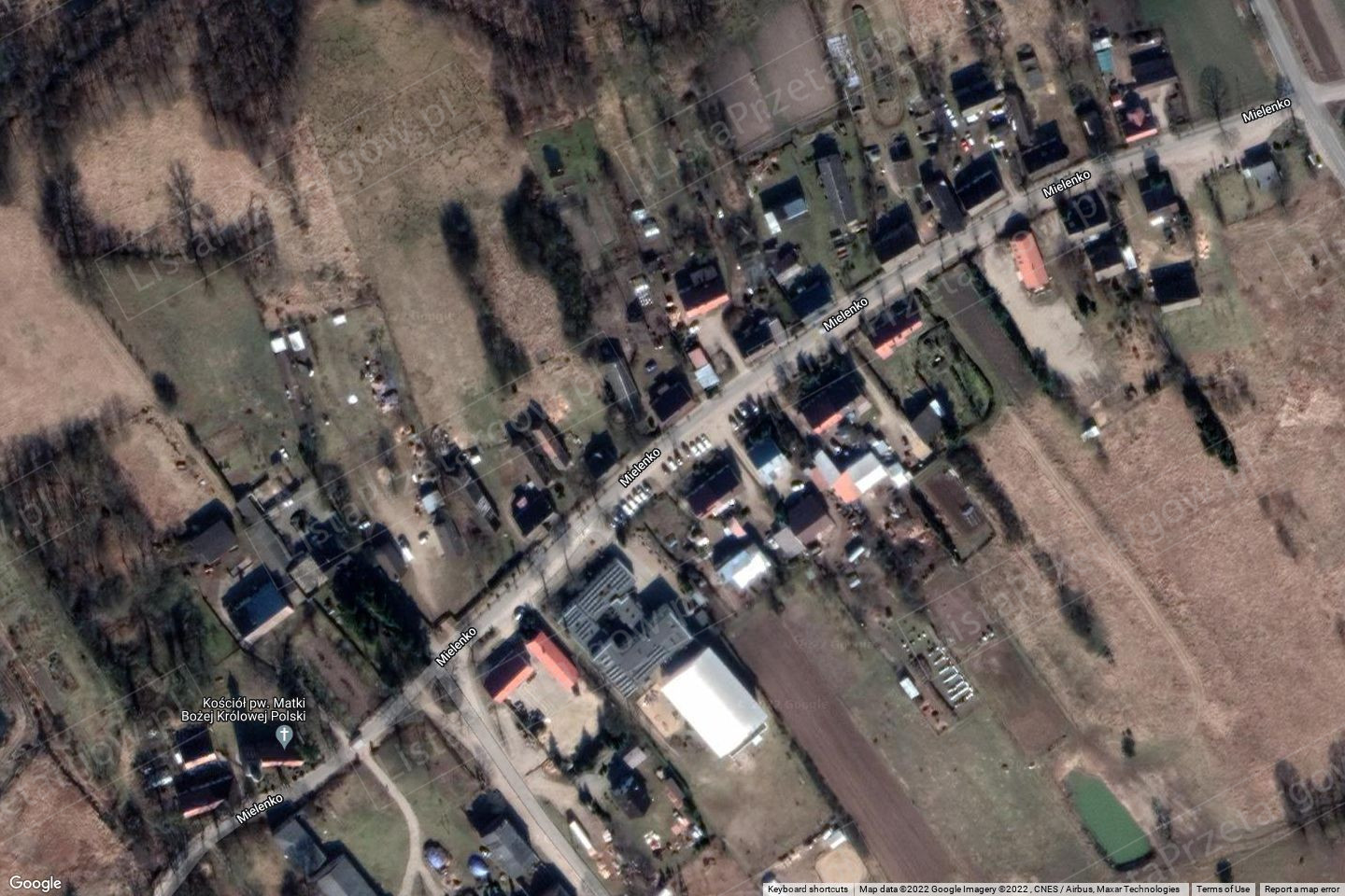 wielofunkcyjna zabudowa Mielenka Dr., droga gminna gruntowa, droga wojewódzka oraz jezioro Wilże. Teren